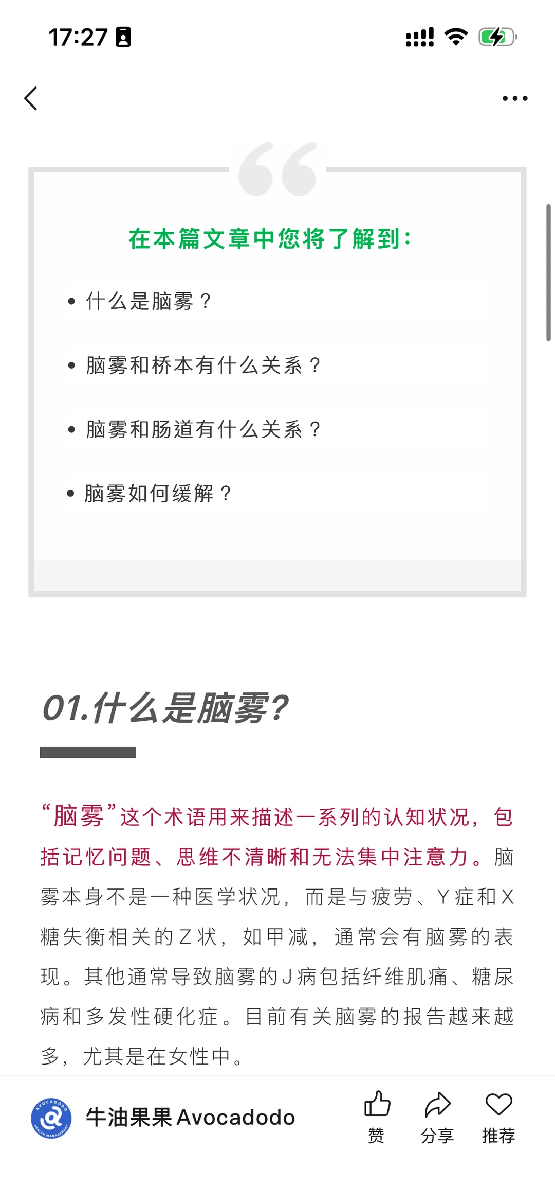 其实脑雾不是什么独立的疾病,是桥本的常见症状之一。