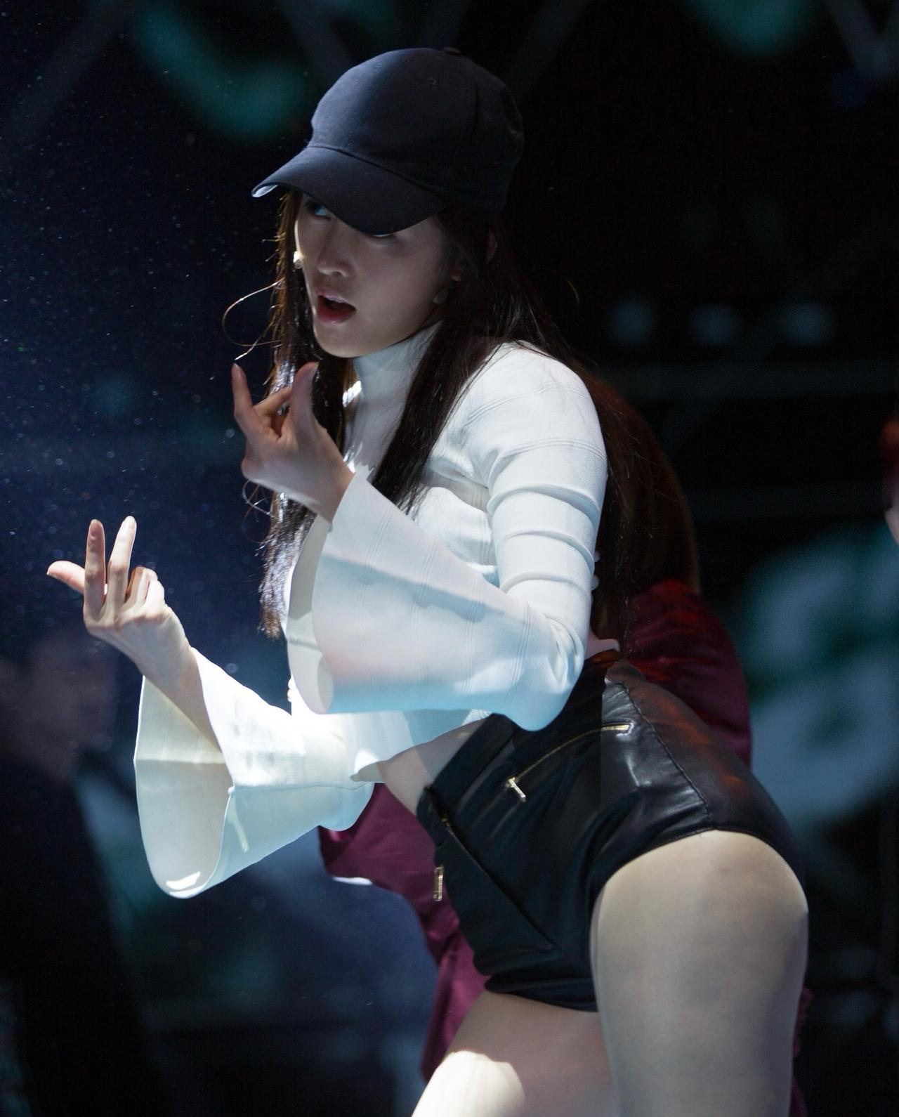 最满意的张天爱舞台穿搭!张天爱 小皮裙大波浪 大长腿 蜜桃臀