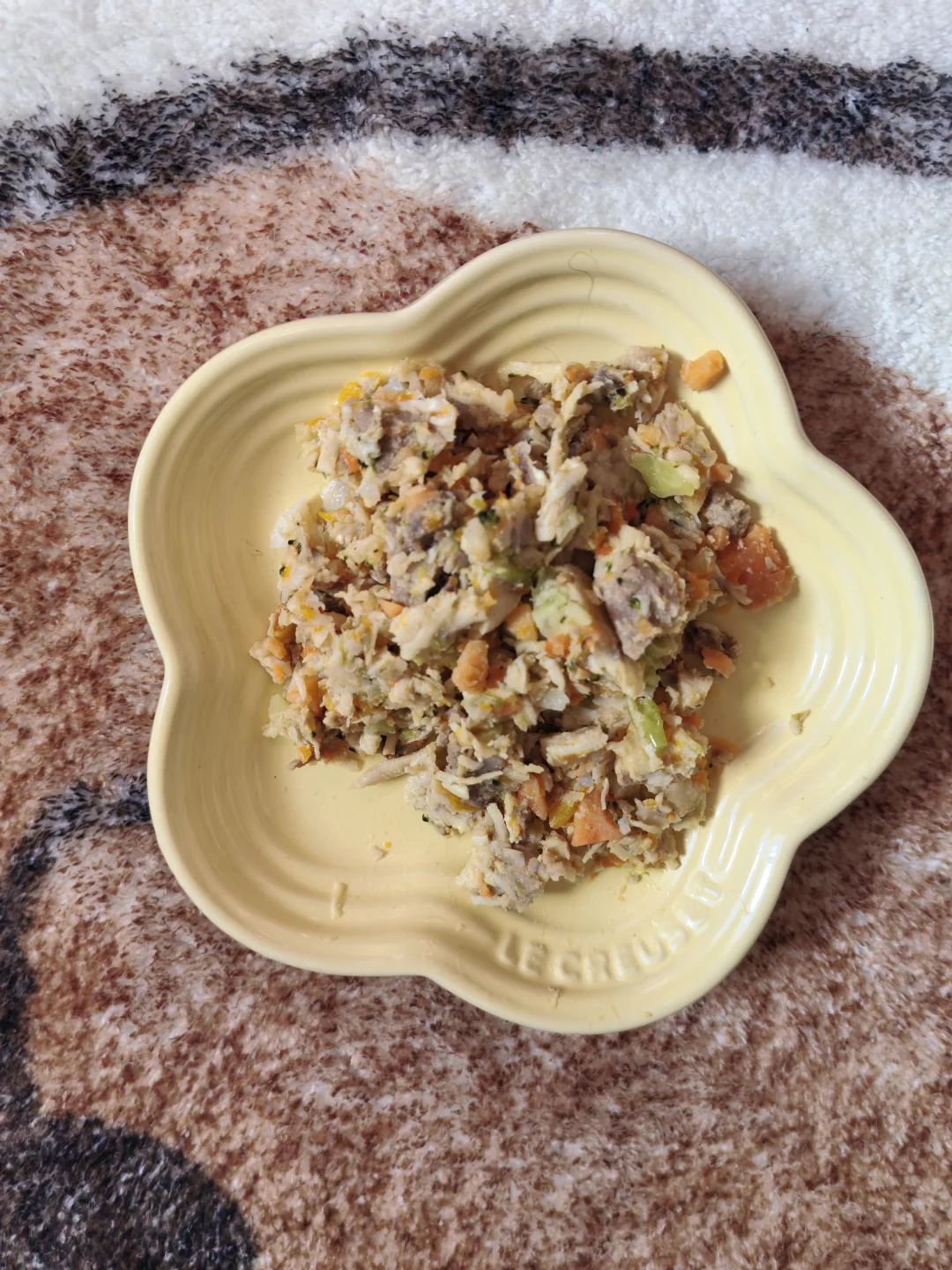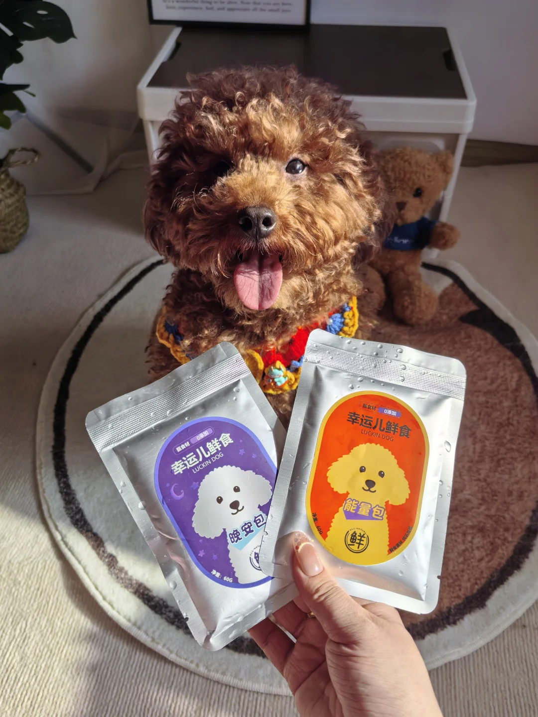 谁懂啊!之前我家狗吃饭得我端着碗追着喂,自从换了幸运儿鲜食,每天到点就蹲我脚边扒腿催饭… 一拆袋就是肉香,配料表看得我都放心:鸭胸肉、牛肉这些鲜荤,混着欧芹、番茄之类的果蔬,连补钙都是鸡蛋壳粉这种天然的,没那些乱七八糟的添加剂。 包装也很细节!遮光密封的小袋,拆一袋吃一袋,不像之前的粮开袋没几天就潮了。我家是玻璃胃,按它给的7天换食法慢慢过渡,居然没软便,现在拉的粑粑都没那么臭了hhh 听说还能一对一定制食谱,快多年了,给这只挑食小狗也把年货安排上啦~