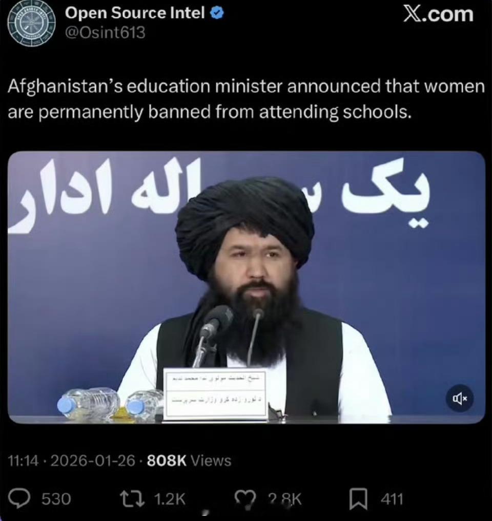 简直让人很难想象,他们国家怎么会有这么荒唐的做法!阿富汗塔利班教育部长内达·穆罕默德·纳迪姆正式宣布:永久禁止所有6年级以上的女性接受中等及高等教育,无论公立还是私立学校,也包括大学、职业培训和任何正规教育机构。这一决定并非临时政策,而是将过去四年逐步收紧的限制制度化、永久化,使阿富汗成为当今全球唯一全面剥夺女性中高等教育权利的国家。阿富汗永久禁止女性上学