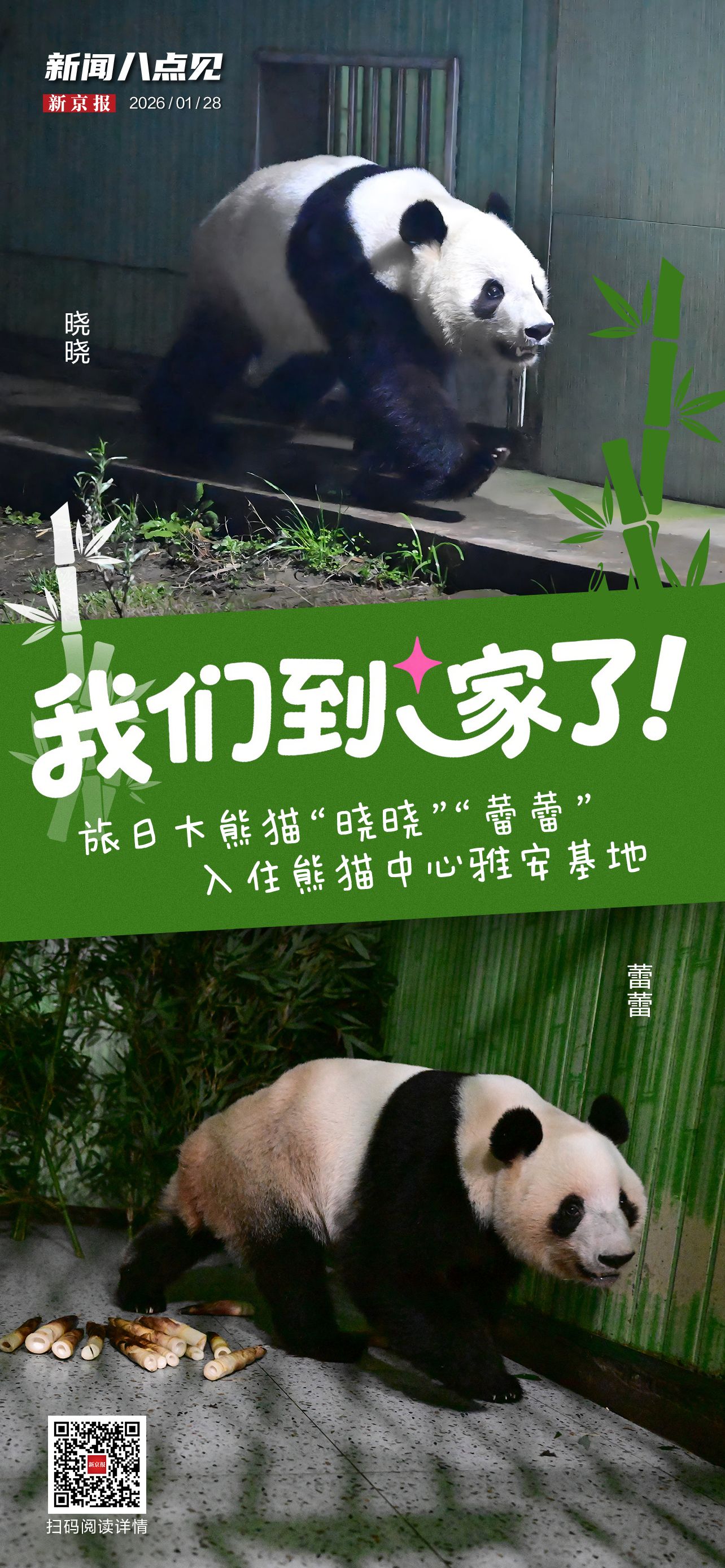 1月28日,大熊猫“晓晓”“蕾蕾”入住中国大熊猫保护研究中心雅安基地。