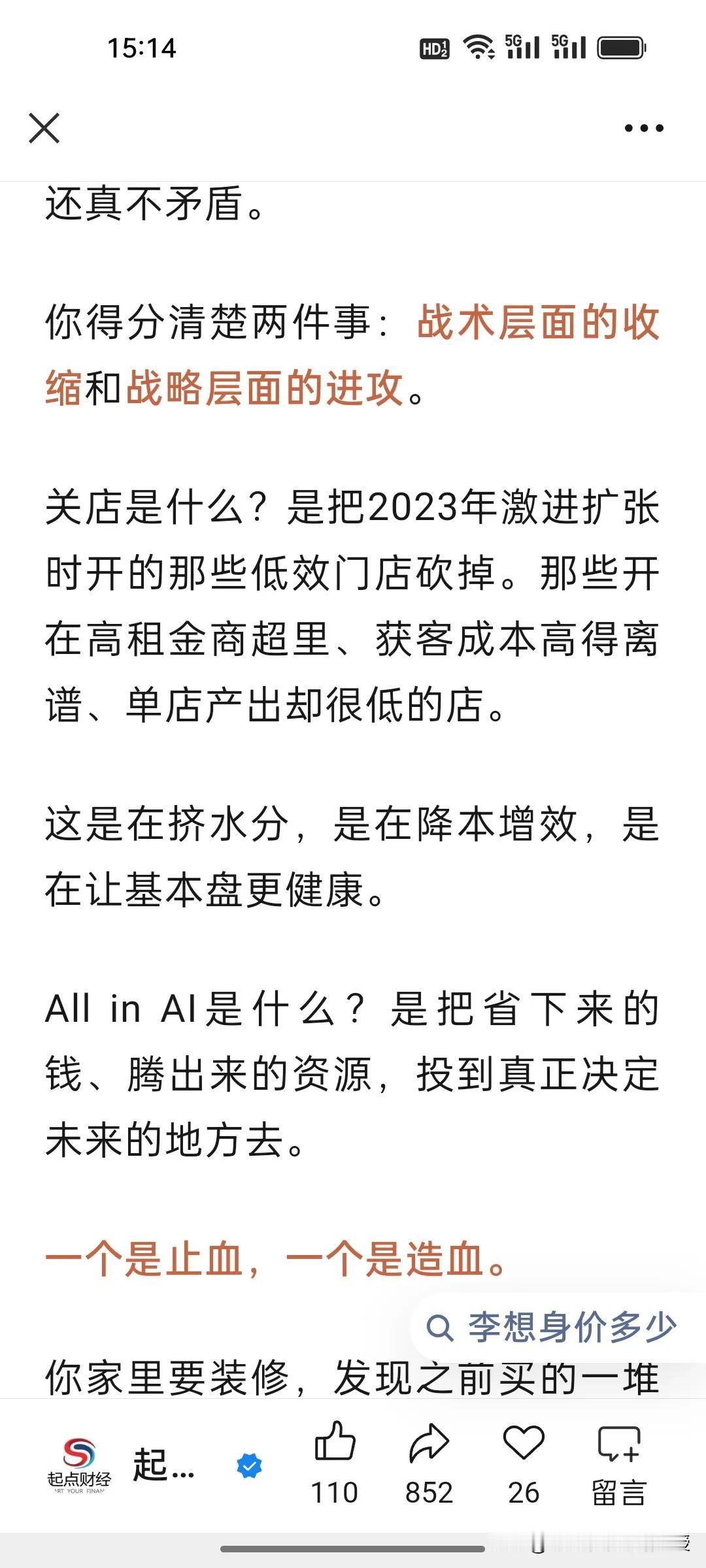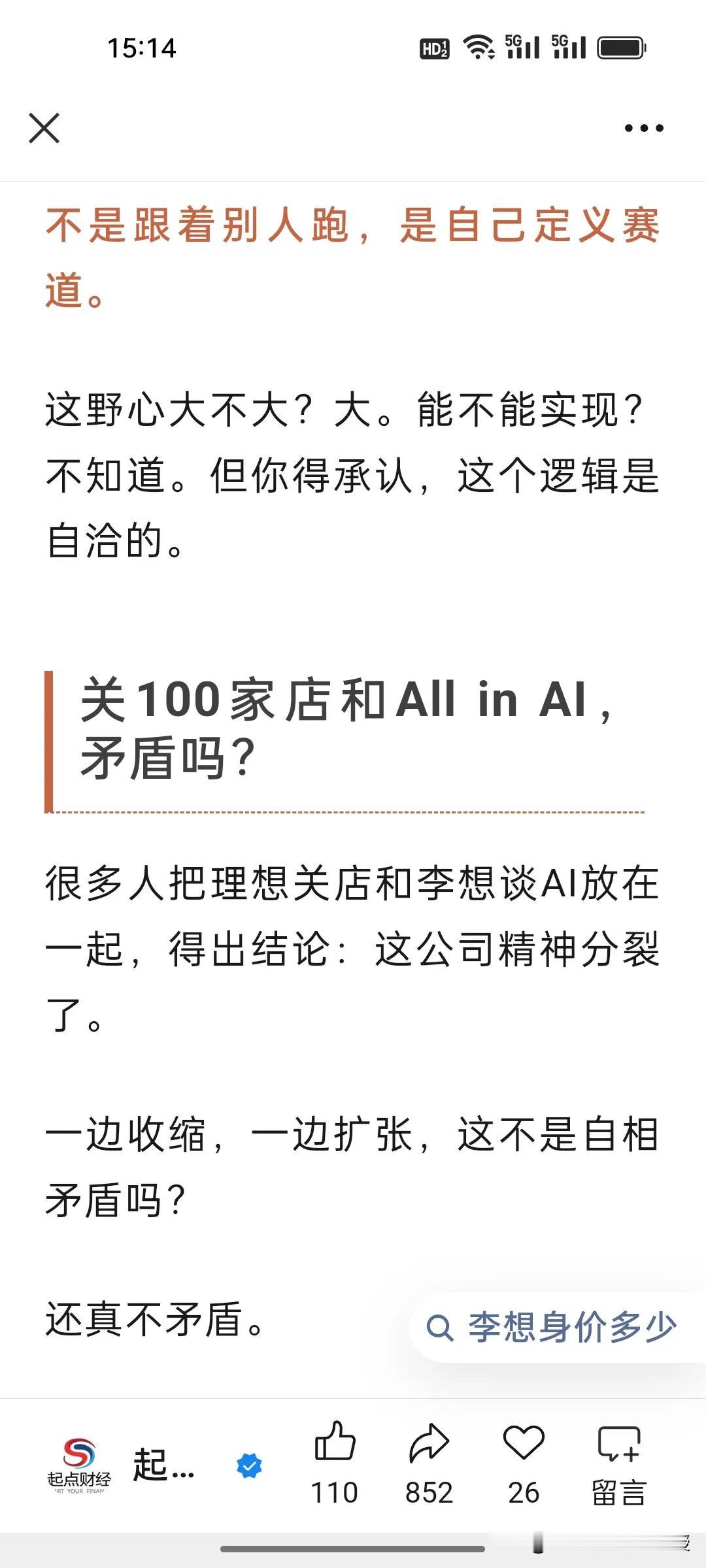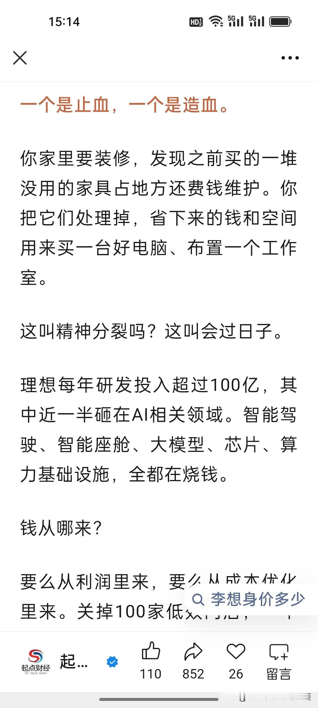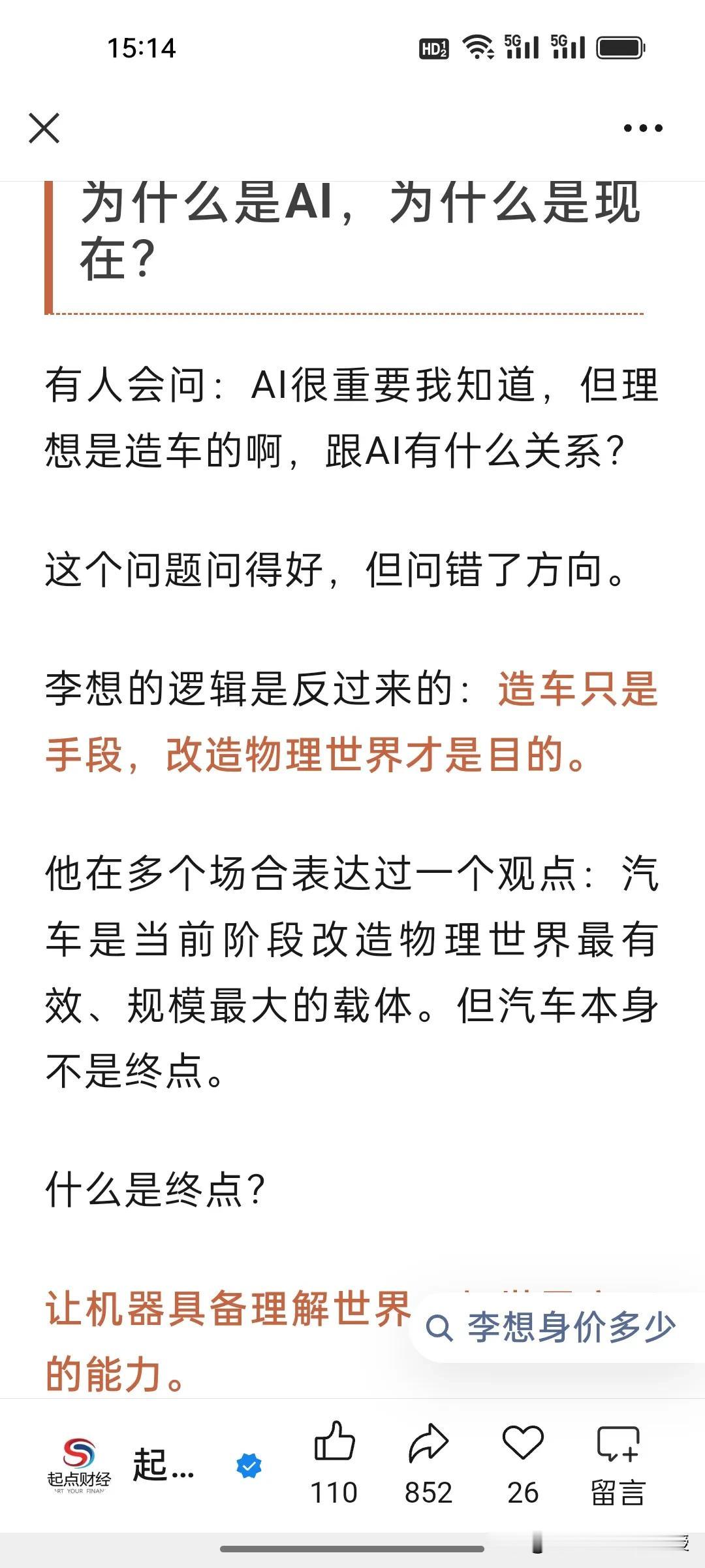 李想也是受到马化腾在年会上发力AI的启发吗?为何大佬们集体押注AI,李想竟开两小时会议不谈车只布道AI? 1月26日,理想临时全员会上,李想直言2026是AI头部最后窗口期,誓要跻身全球具身智能前三,还要落地人形机器人、2028实现L4智驾。他孤注一掷搞AI,只因理想增程优势被赶超,硬件壁垒不在,唯有AI能重构智驾竞争维度,让企业跳出车企内卷。 马化腾在腾讯年会上称,AI是目前唯一值得投入的领域,今年腾讯元宝过年要撒十亿红包。正因AI是产业升维核心,能重塑生产力、开辟第二增长曲线。大佬们的疯狂布局,本质是抢占未来商业生态的核心入场券,错过AI,就可能错过下一个时代!