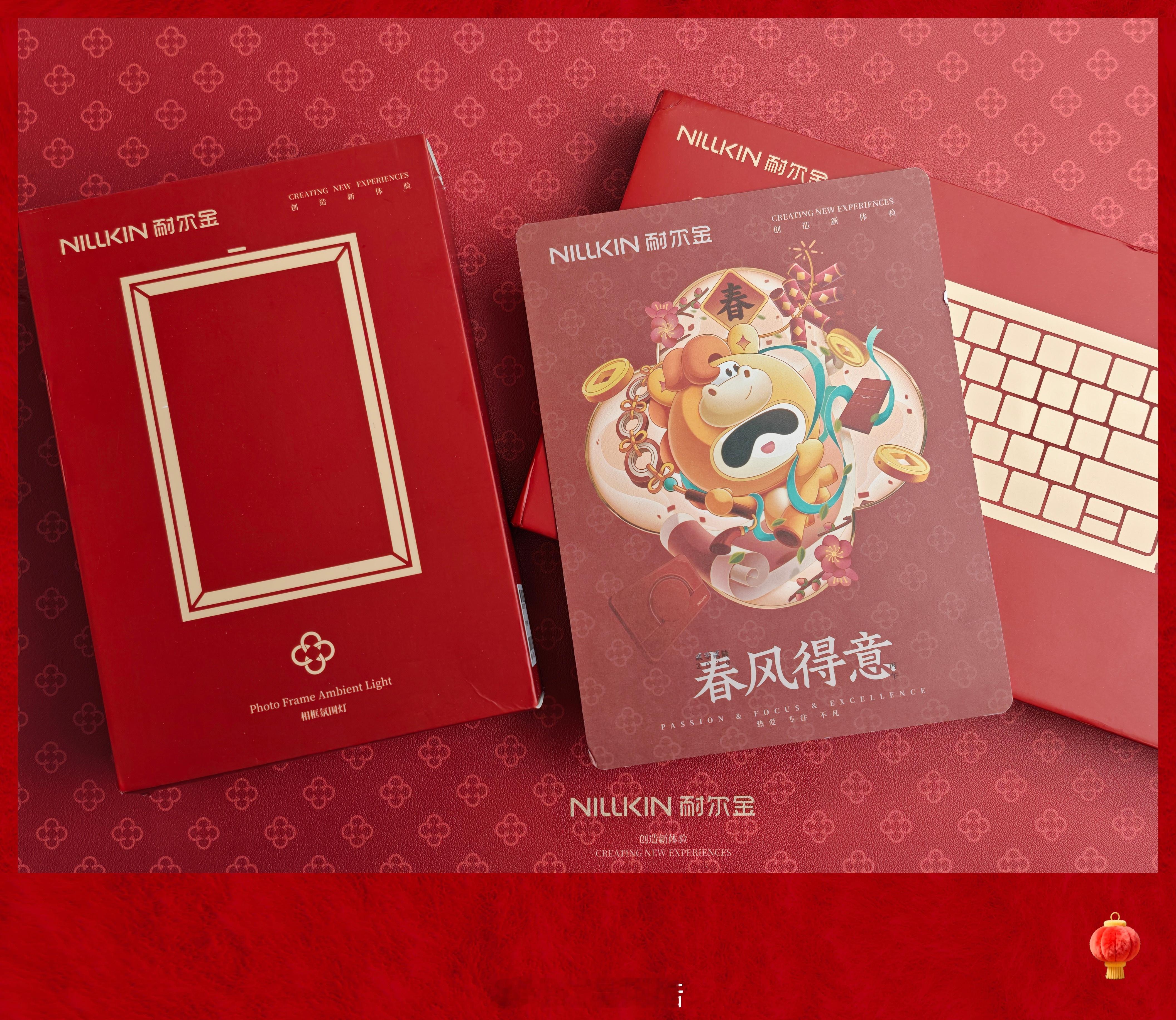 收到耐尔金的新春礼盒啦🎁新年的氛围感更浓厚了!喜气的红色加上马年专属“马蹄纹”元素,这张皮质的鼠标垫质感特好。礼盒还有耐尔金家的折叠键盘,这次也是换上新春新皮肤,颜值在线好用也好看还有一个很精致相框灯,红红火火喜气洋洋!马年春风得意耐尔金春风得意