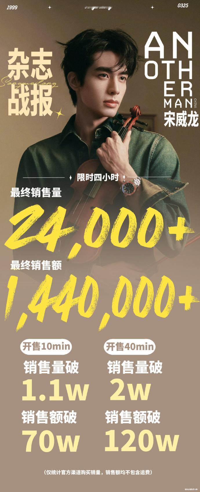 宋威龙杂志销售额140w+,有点流量生的感觉了。这么多年终于熬出来了,不容易。