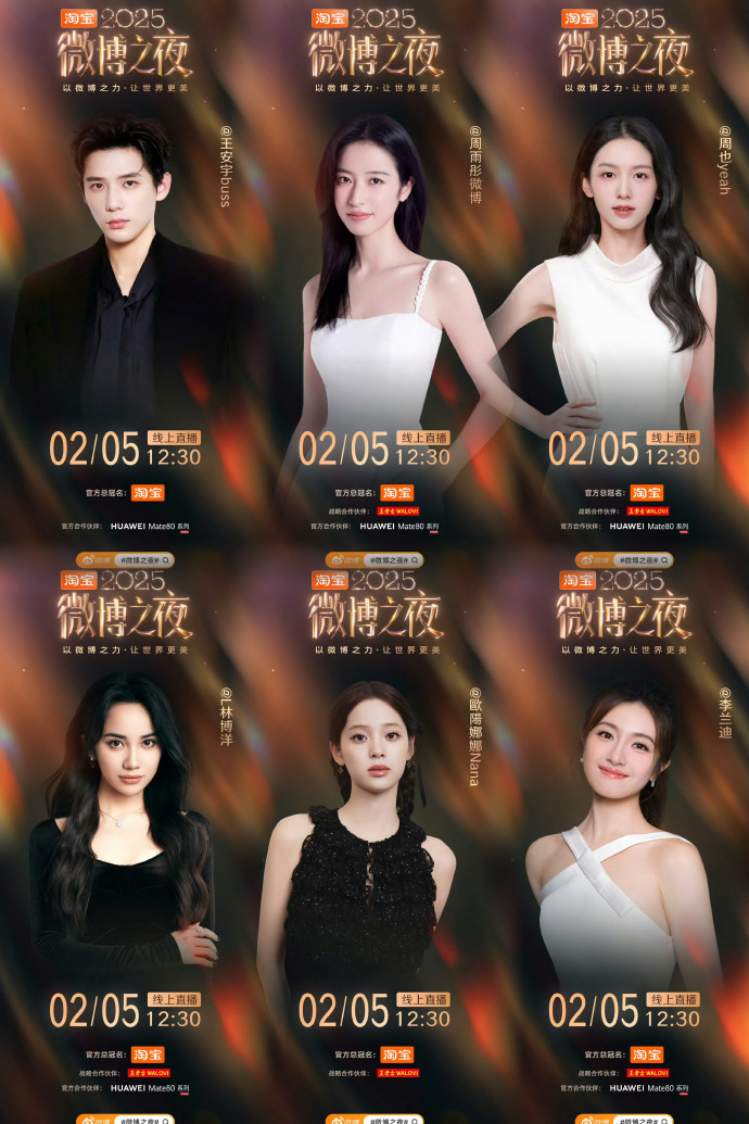 微博之夜第二波阵容🈶古力娜扎,曾舜晞,刘浩存,周也,王安宇,周柯宇、陈妍希,敖