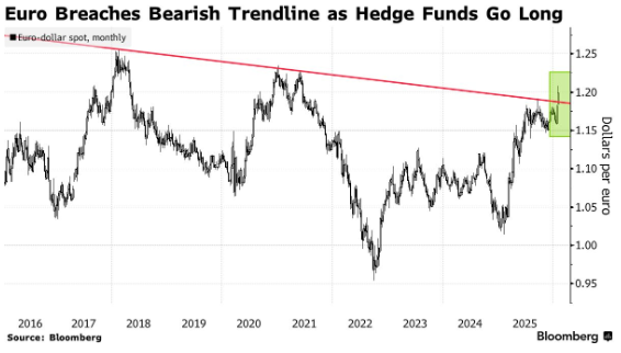 策略师文·拉姆表示,“欧元走强正引起欧洲央行一些人士的警觉,但这不足以阻止其继续走高……美国飘忽不定的政策正促使投资者抛售美元,而鉴于对日本政府财政状况的担忧,欧洲货币更有条件吸收资金流入。”