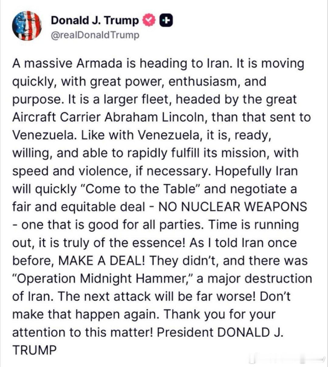 🚨特朗普再次威胁伊朗: