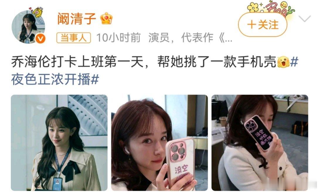 阚清子近照状态乔海伦打卡上班第一天!新剧《夜色正浓》开播,阚清子的造型又美又灵,