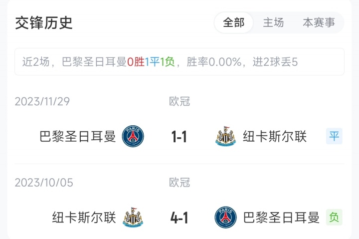 本轮赛前,巴黎4胜1平2负积13分,排名欧冠积分榜第6;纽卡同样4胜1平2负积13分,排名欧冠积分榜第7。