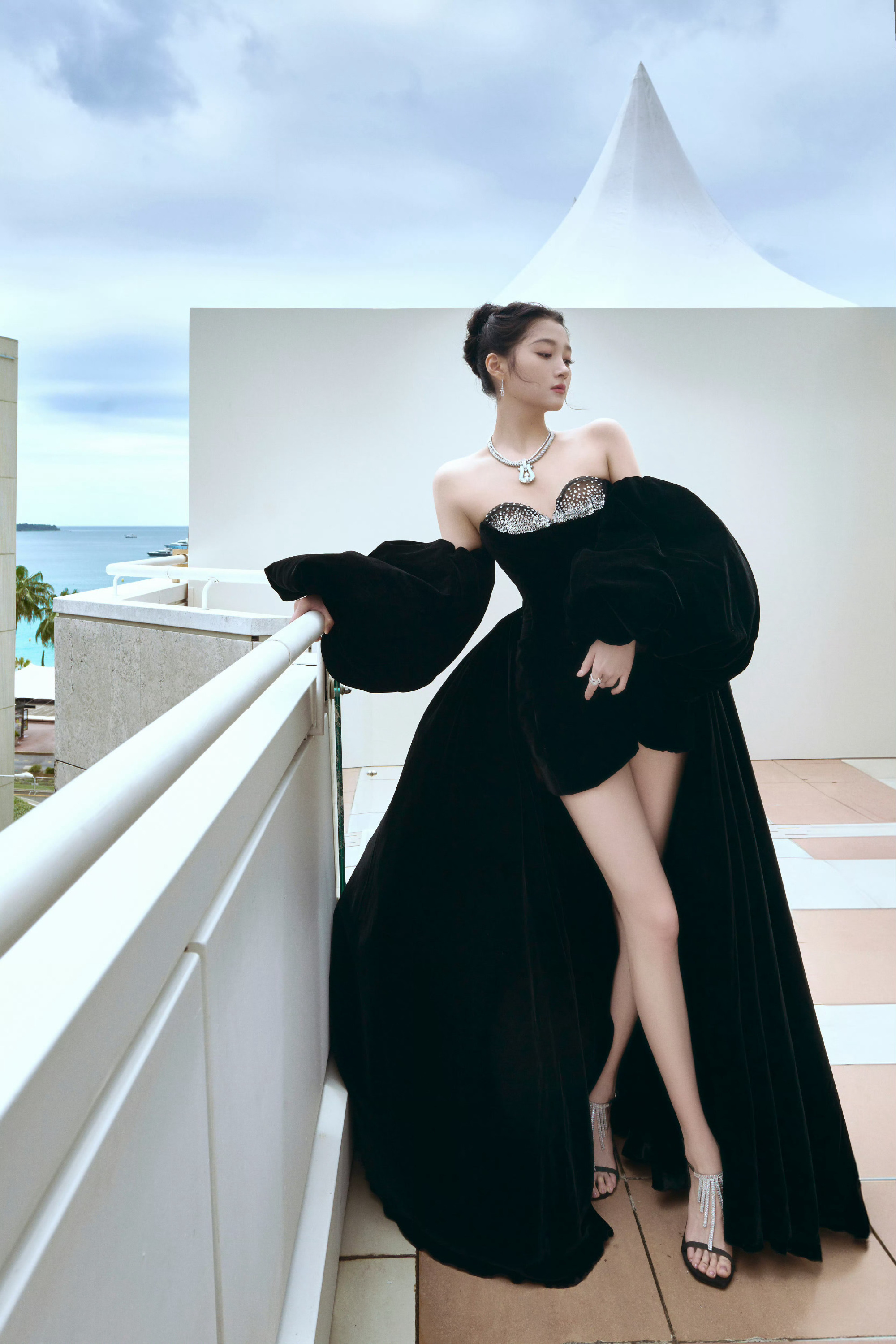 关晓彤戛纳红毯妆造,黑裙大长腿,也太精致了吧。关晓彤
