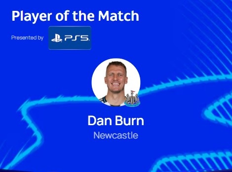 本场比赛纽卡后卫丹·伯恩表现出色,送出助攻,4次解围,赛后当选欧冠官方评选出的本场最佳球员。