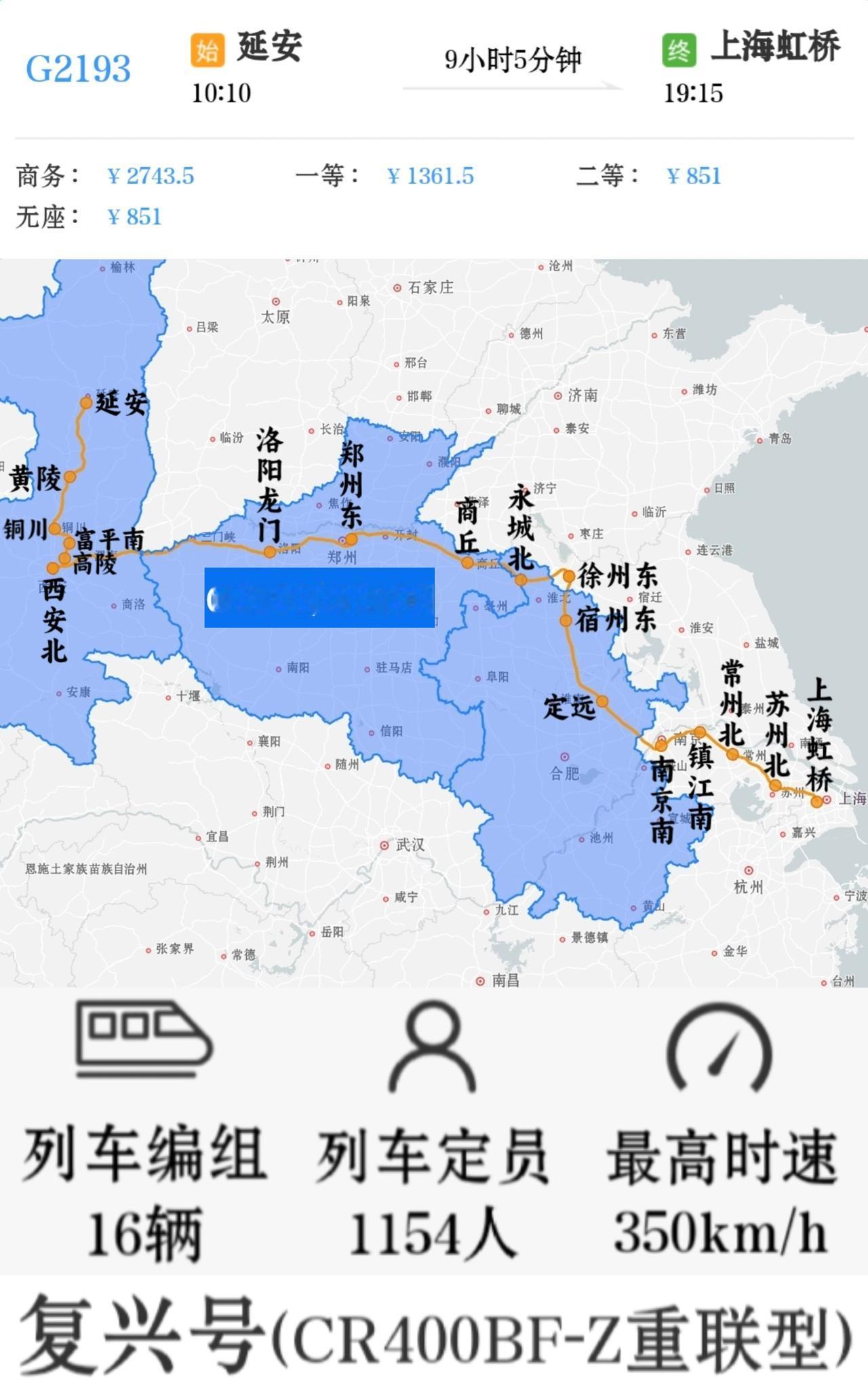 上海到延安高铁一对 上海虹桥到延安G2194/G2195次 延安到上海虹桥G21