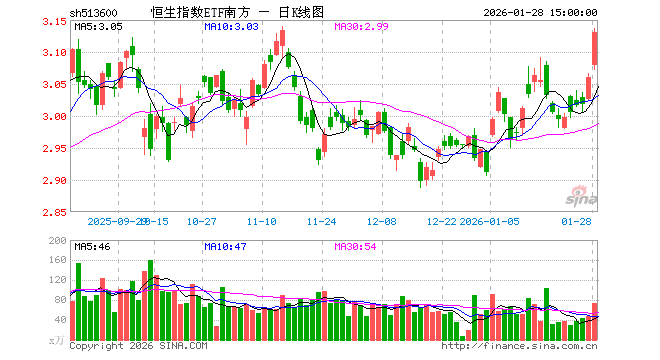 1月28日,恒生指数ETF南方(513600)涨2.32%,成交额2.31亿元。当日份额减少2000.00万份,最新份额为8.20亿份,近20个交易日份额减少2300.00万份。最新资产净值计算值为25.90亿元。