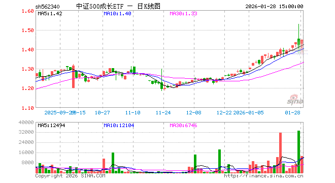 1月28日,中证500成长ETF(562340)涨1.90%,成交额187.01万元。当日份额减少100.00万份,最新份额为1014.43万份,近20个交易日份额增加100.00万份。最新资产净值计算值为1466.87万元。
