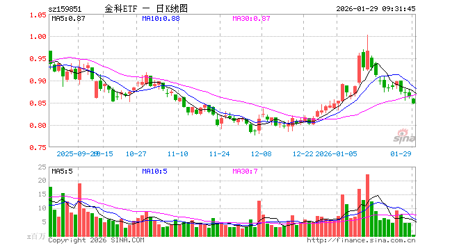 1月29日,金融科技ETF(159851)开盘跌0.58%,报0.858元。金融科技ETF(159851)重仓股方面,同花顺开盘跌0.60%,东方财富跌0.53%,指南针跌0.90%,恒生电子跌0.81%,润和软件跌0.65%,新大陆跌0.54%,东华软件跌0.70%,广电运通跌0.38%,银之杰跌0.64%,四方精创跌1.08%。