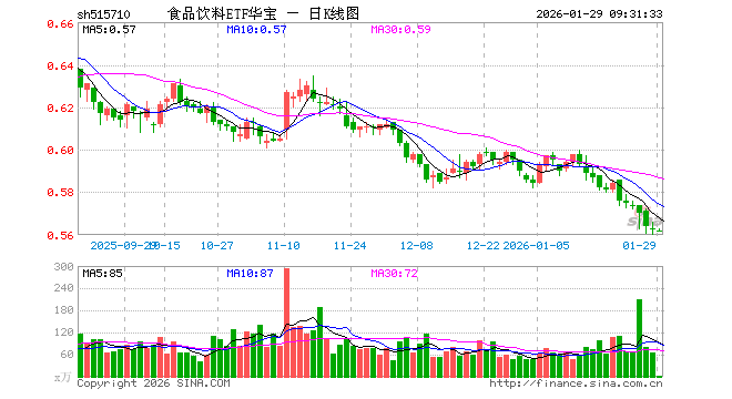 1月29日,食品饮料ETF华宝(515710)开盘跌0.18%,报0.562元。食品饮料ETF华宝(515710)重仓股方面,贵州茅台开盘涨0.85%,五粮液涨0.00%,伊利股份跌0.15%,泸州老窖涨0.57%,山西汾酒涨0.25%,海天味业跌0.34%,东鹏饮料涨1.37%,洋河股份跌0.48%,安琪酵母跌0.07%,今世缘跌0.47%。