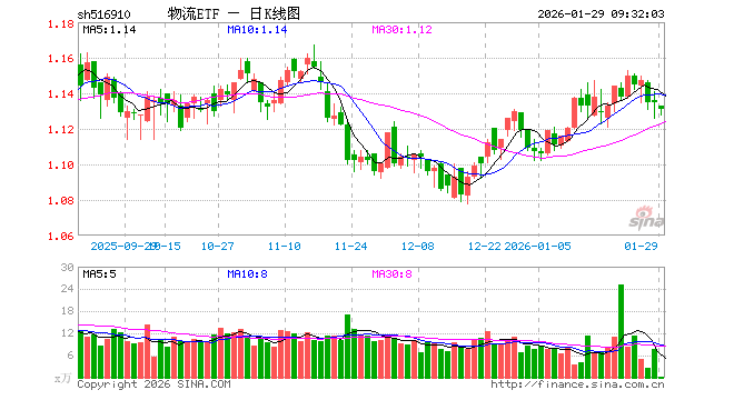 1月29日,物流ETF(516910)开盘跌0.18%,报1.133元。物流ETF(516910)重仓股方面,中远海控开盘涨0.00%,顺丰控股跌0.08%,京沪高铁涨0.00%,招商轮船涨2.06%,大秦铁路跌0.20%,圆通速递跌0.84%,蔚蓝锂芯跌1.24%,中远海能涨1.88%,物产中大涨0.17%,建发股份跌0.21%。