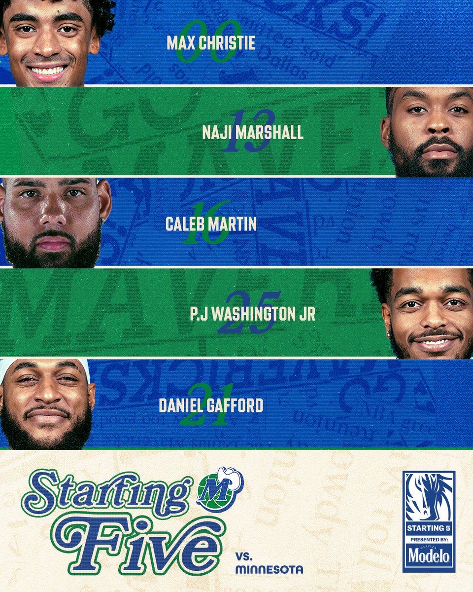 独行侠官方推特报道。今晚的首发阵容如下⤵@ModeloUSA//#MFFL