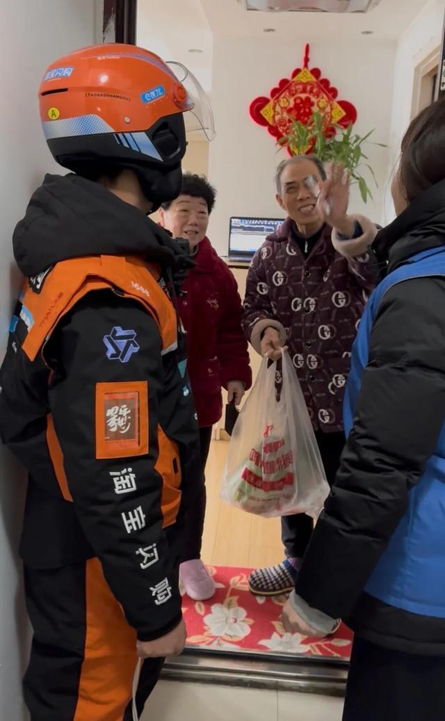他们一起加入蓝骑士志愿服务队,以志愿反哺社区,践行双向互助温情。他们结对帮扶高龄独居老人,利用配送间隙上门探望,送去米面粮油等生活必需品;节日期间为仍在奔波的外卖员送去饺子,让寒风中的劳动者暖胃更暖心;日常在群聊里分享邻里需求,谁家老人需要买药、哪个楼道需要帮手,骑手们都会顺手搭一把。