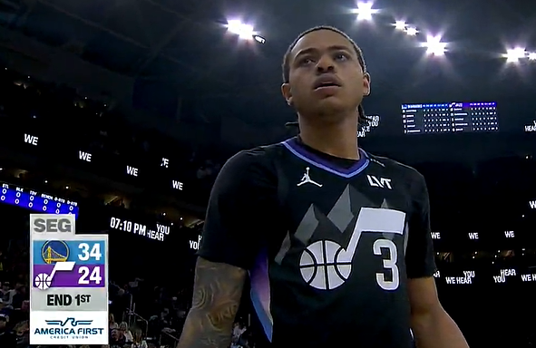 勇士首节三分14投7中&库里8分全场最高,勇士34-24领先爵士