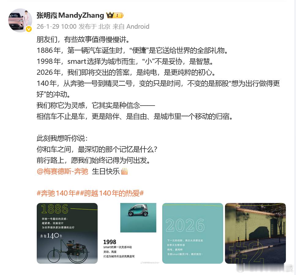 smart祝奔驰140岁生日快乐 smart 应该算是奔驰大家庭里 “小孩儿桌” 吧,所以主打一个年轻范儿~ 今天是奔驰140岁生日 奔驰140年跨越140年的热爱