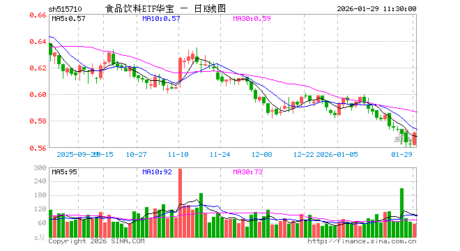 1月29日,截止午间收盘,食品饮料ETF华宝(515710)涨1.42%,报0.571元,成交额3126.67万元。食品饮料ETF华宝(515710)重仓股方面,贵州茅台截止午盘涨3.72%,五粮液涨1.56%,伊利股份跌0.99%,泸州老窖涨5.54%,山西汾酒涨2.70%,海天味业涨0.26%,东鹏饮料涨1.84%,洋河股份涨0.18%,安琪酵母跌1.48%,今世缘涨2.11%。