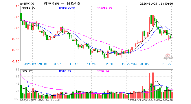 1月29日,截止午间收盘,金融科技ETF易方达(159299)涨0.31%,报0.956元,成交额1638.29万元。金融科技ETF易方达(159299)重仓股方面,东方财富截止午盘跌0.83%,同花顺涨0.40%,指南针跌0.97%,恒生电子跌0.50%,润和软件涨0.27%,东华软件涨0.70%,新大陆涨0.25%,广电运通涨0.38%,银之杰涨0.36%,四方精创涨0.49%。