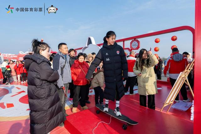 市集内八大主题区域特色鲜明,驻足体验的市民络绎不绝。在IP合影区,体彩乐小星与生肖“午马”成为合影焦点;体感滑雪区,男女老少站在滑雪板上,来一次身临其境的嗨翻雪场;旱地冰壶挑战区,则排起了一条“长龙”,大家纷纷摩拳擦掌,跃跃欲试;顶呱刮与大乐透互动区,笑声不断,市民参与趣味游戏的同时,也近距离感受体彩玩法的乐趣。结束越野跑的市民王女士在旱地冰壶一试身手,尽管投掷的冰壶最终没进入营垒中心,但她还是乐得合不拢嘴,“没想到赛后还有这么有趣的活动,大家都玩得很开心,我们也在互动中了解到体彩的公益价值,感觉特别有意义。”