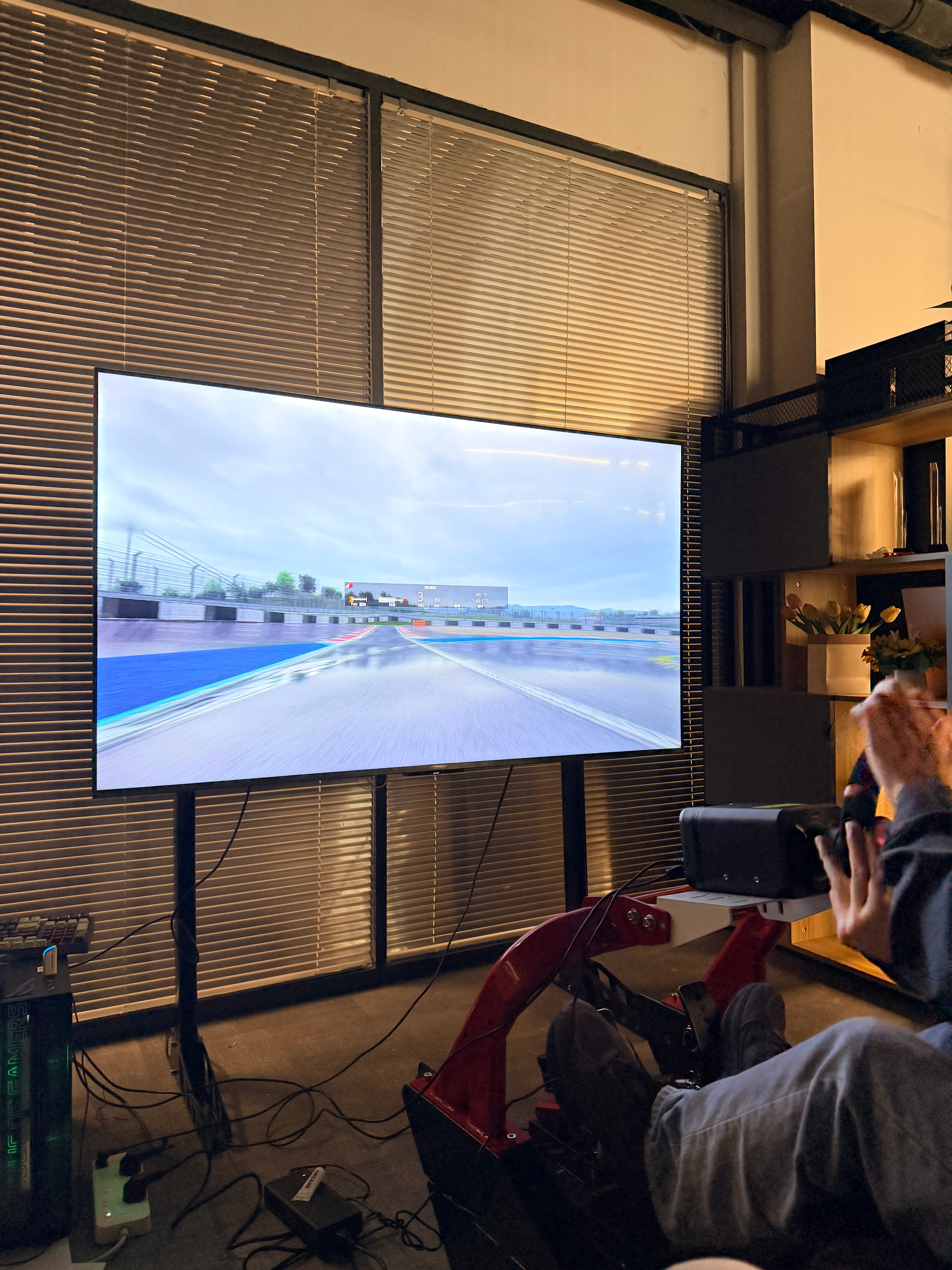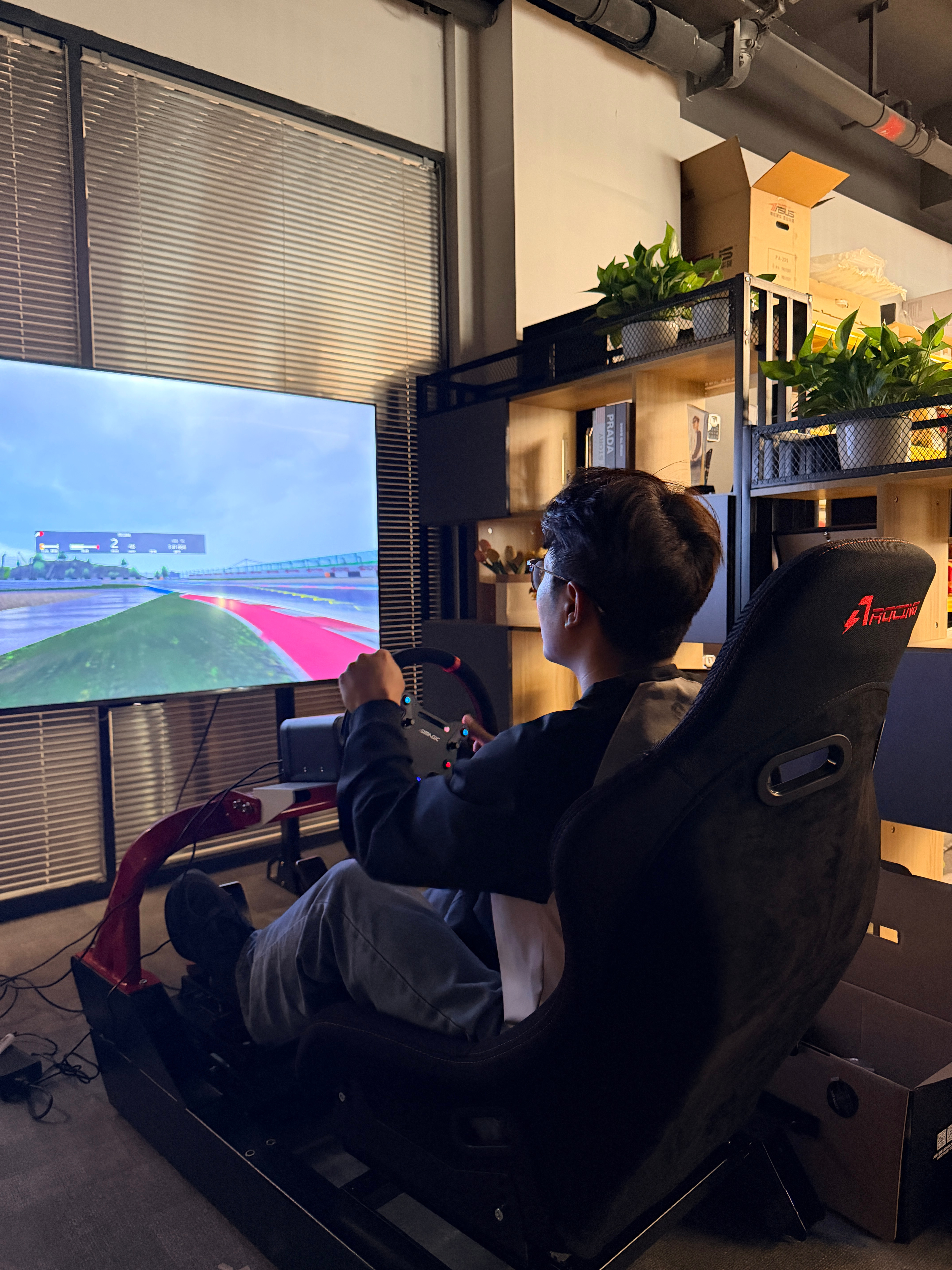 我在这处理年会的琐事这家伙玩的不亦乐乎不过看着架势有点赛车手那味儿了你俩什么时候