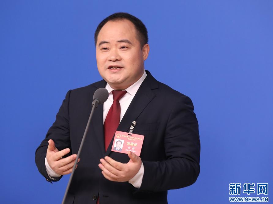 徐勃在“代表通道”接受采访。新华网周远钢摄