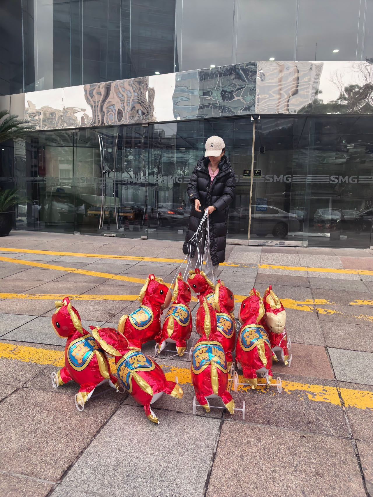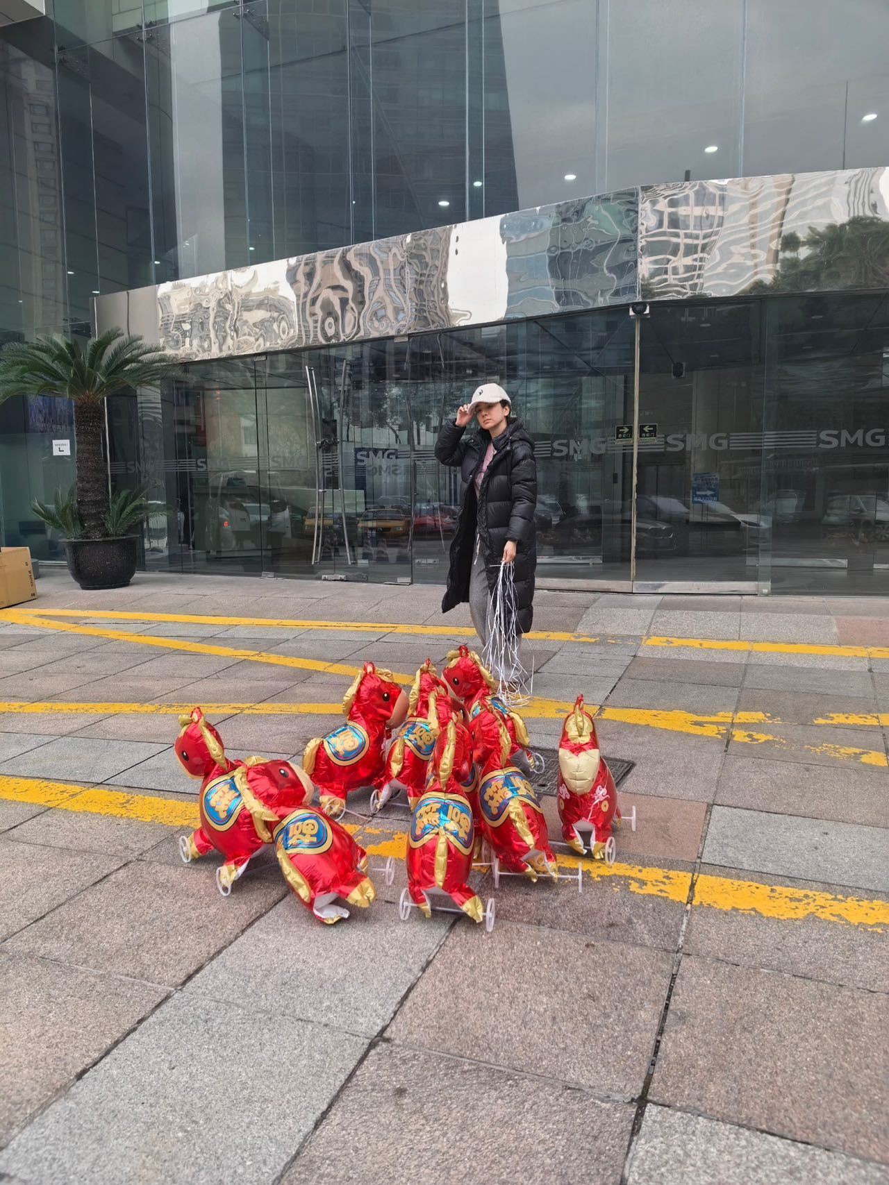 黄奕牵着9匹气球马上班 黄奕这波春晚上班路透太有趣了!身后9匹印着祝福语的气球马氛围感拉满,别出心裁的小设计满是新年心意,狠狠期待姐姐在东方卫视春晚的精彩表现啦~东方卫视春节晚会