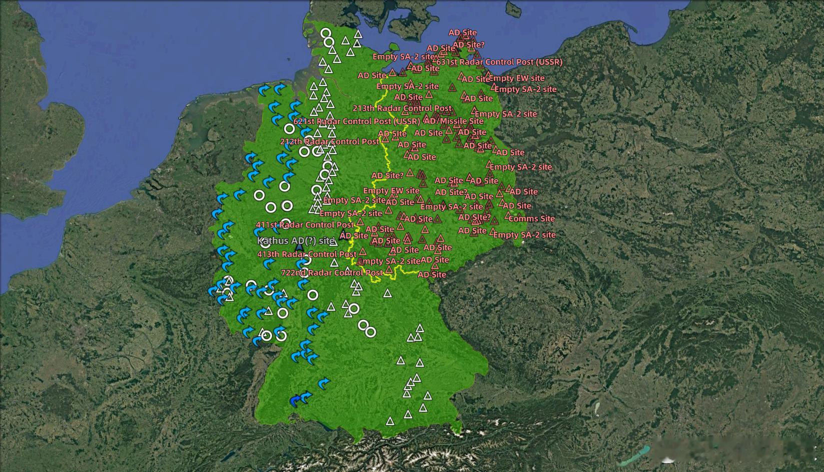 冷战时期,图1是东西德军事基地分布,图2是东西阵营的防空阵地 历史冷战德国