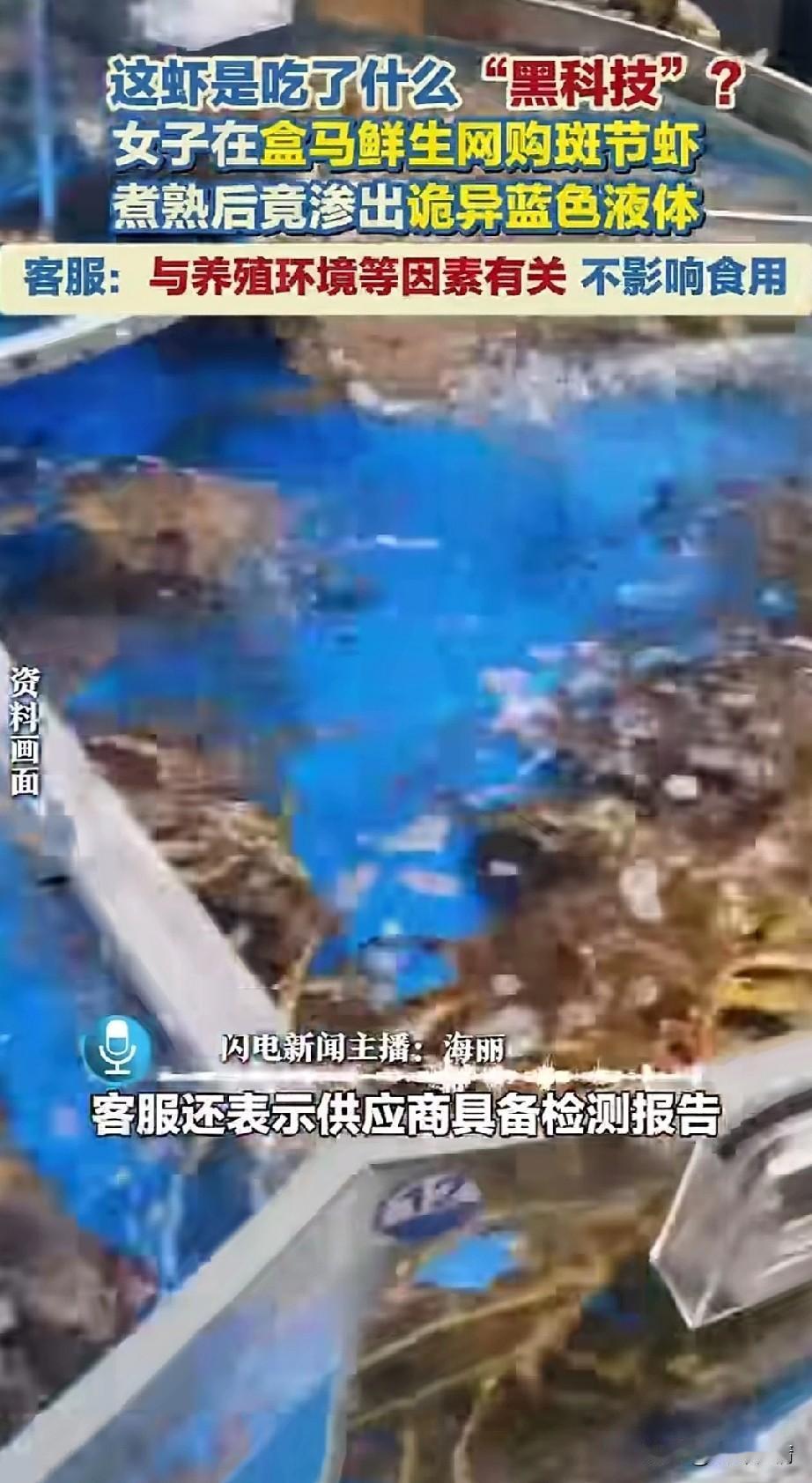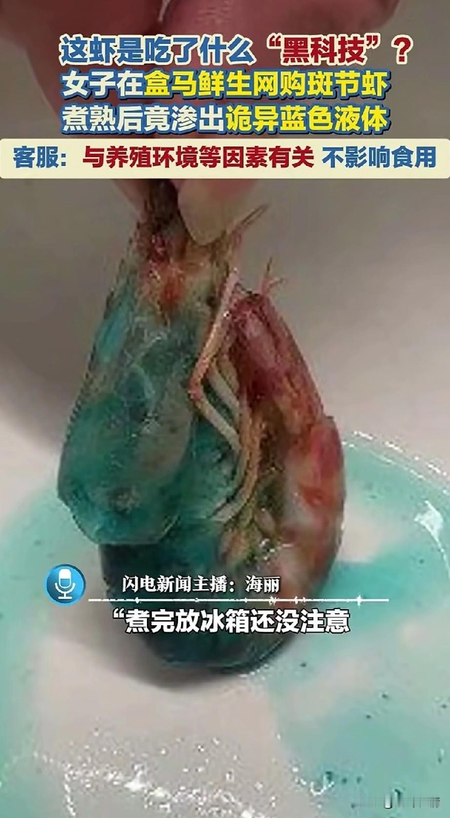 女子在盒马生鲜网上购物斑点虾,本来一家人开开心心的要吃虾,结果有一只虾居然泛着蓝色液体! 这让做虾的女子吓了一大跳,她看着留下来的蓝色液体,瞬间就对这些虾没了胃口! 还咨询了河马的客服,结果河马客服告知他们,这是养殖环境的结果,根本不影响使用!他们的产品都是有检测报告的!可以放心实用! 但看着也太吓人了,只好把这只虾冻在了冰箱里,随后表示自己要拿去检测,想了解这蓝色液体到底是什么? 有没有养虾的网友?解答一下,这些蓝色液体到底是什么?是什么行业内幕吗?这样的虾到底能不能吃? 现在大品牌的水产品也是很吓人,养殖环境能把虾养成蓝色,真让人很奇怪,这样的颜色的虾,真的让人难以下口! 现在的食品安全卫生真的让人触目惊心,吓得老百姓都不敢相信了,毕竟一不小心就要吃出了病只能自己承担! 大家觉得盒马生鲜卖的虾有蓝色液体渗出,这是什么? 劣质食品该不该追责 盒马鲜生活虾 氨氮中毒虾 马斑虾 斑点虾捕捞期