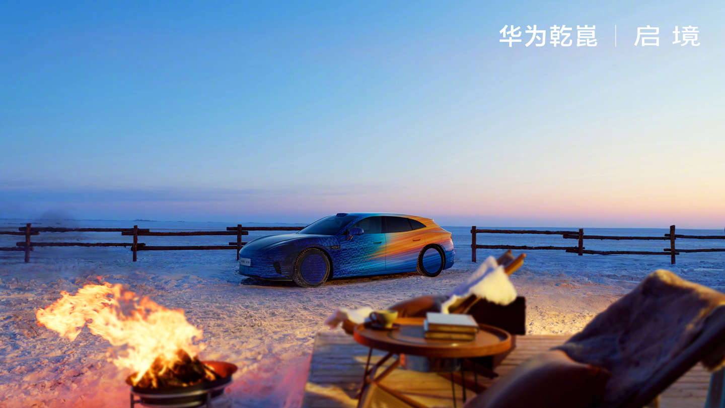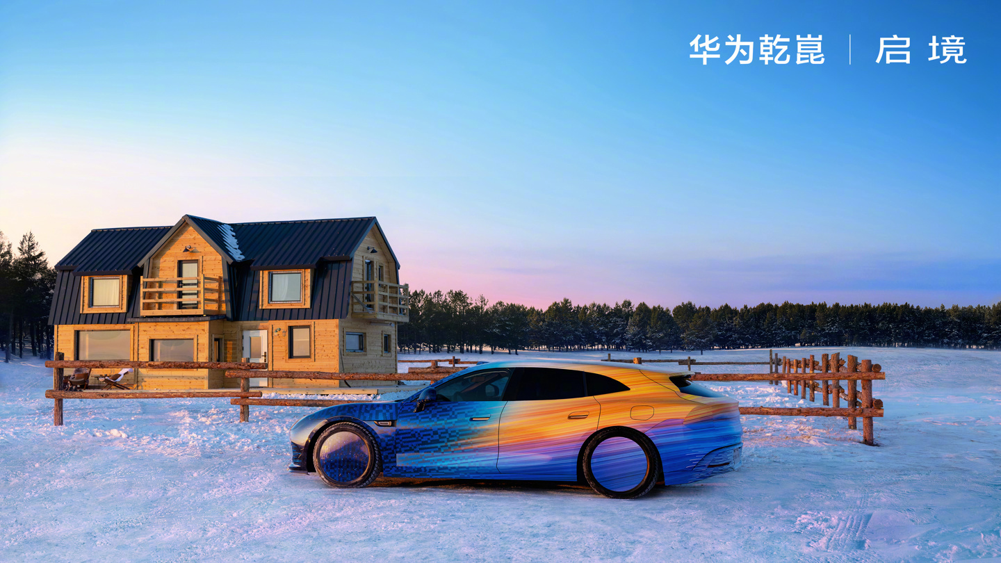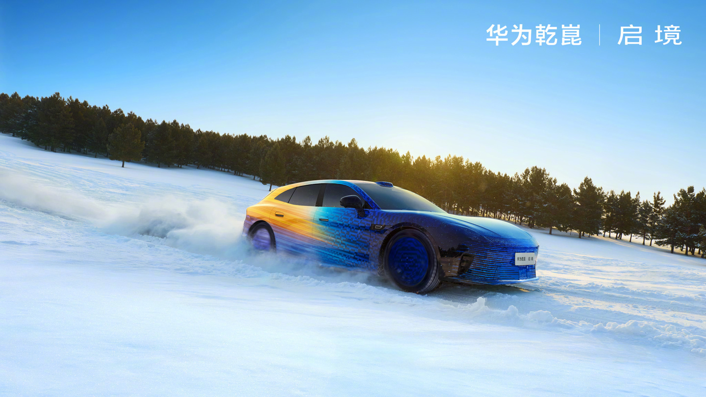 【华为乾崑|启境首款猎装轿跑最新预告图公布,雪地测试已启动】图片中的新车轮廓已经