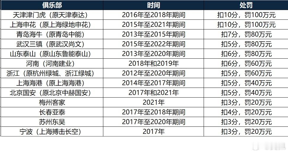 九家中超俱乐部被罚北京国安涉案的赛季是2017和2021,有趣的是这两年分别是