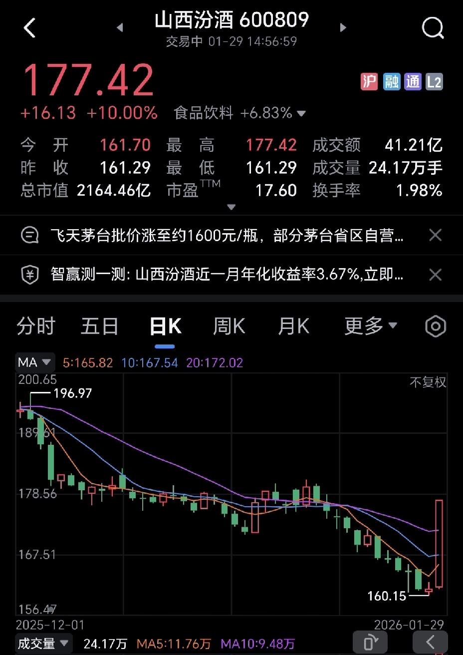 今天的白酒疯了,白酒三巨头五粮液、山西汾酒及泸州老窖全部涨停,这一幕太少见了。 前几天还在说,白酒不知道啥时才企稳,没想到,一日间全部雄起,让人猝不及防。 就算你业绩多拉胯,今天都涨停。 看熊的白酒,让你突然间高不可攀,这就是股市的神奇之处吧。 前几天有人还在说,段永平抄底茅台是有钱没地方花,再看看现在的茅台,又爬上1400元了。 只能说,人家眼光太毒辣,太厉害了!五粮液 白酒行情 泸州老窖 老窖白酒