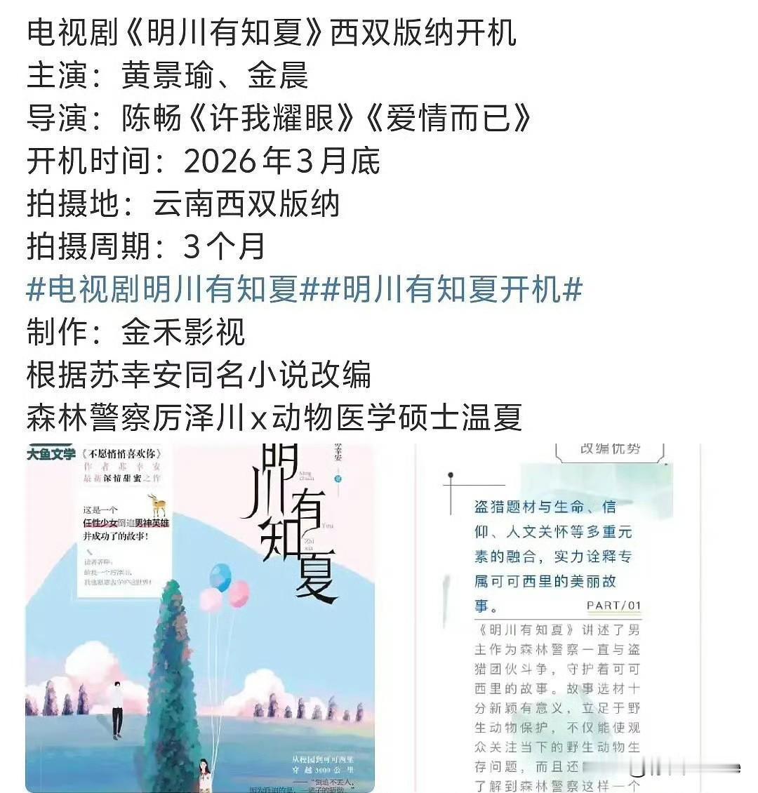 1月29日,金晨再不发声回应,那她跟黄景瑜原定3月底在云南开机的新剧《明川有知夏