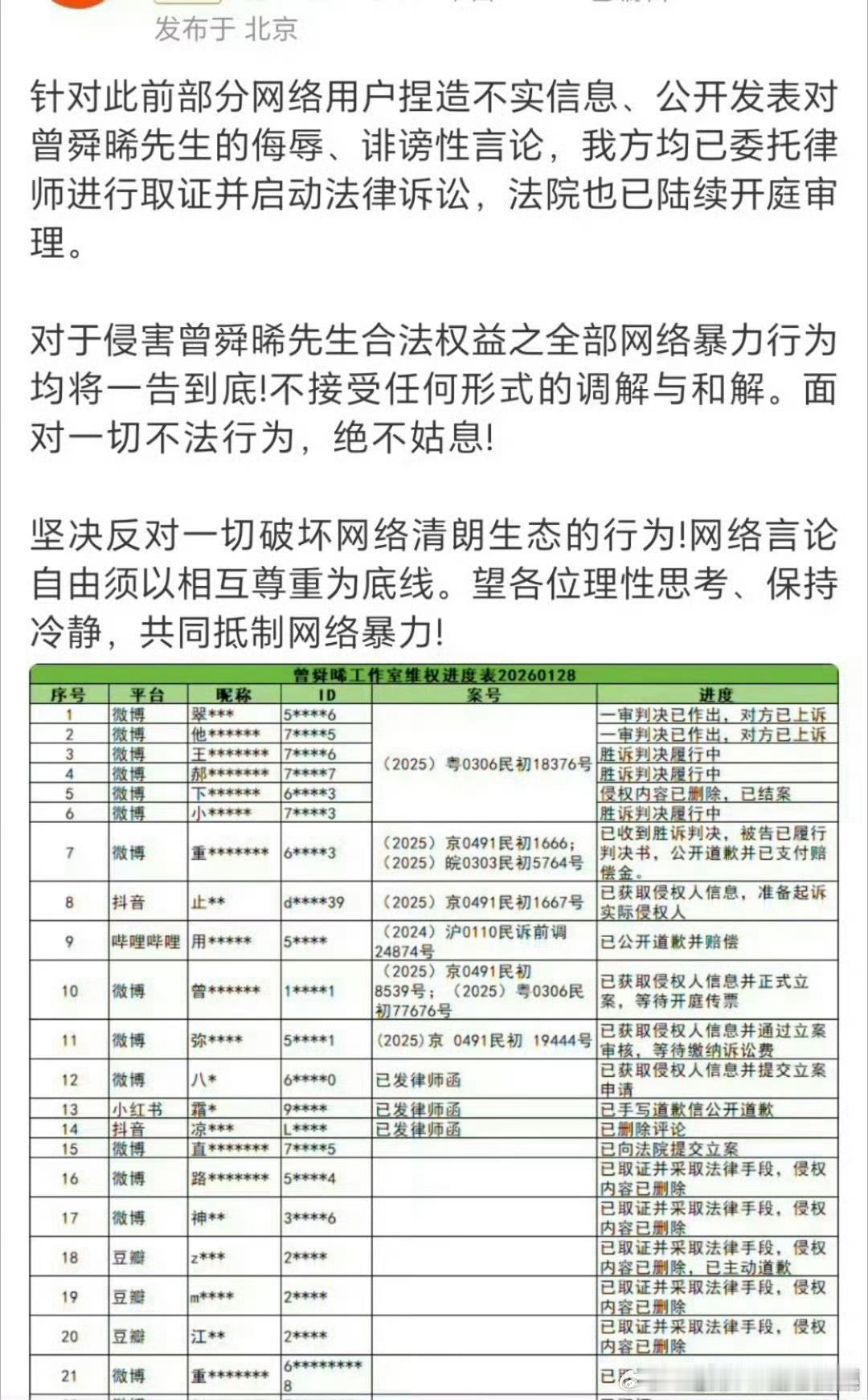 曾舜晞方告嘿最新进展更新,vb、逗音、字母站、🍠、豆瓣等全平都有曾舜晞全面告嘿,支持曾舜晞 依法维权
