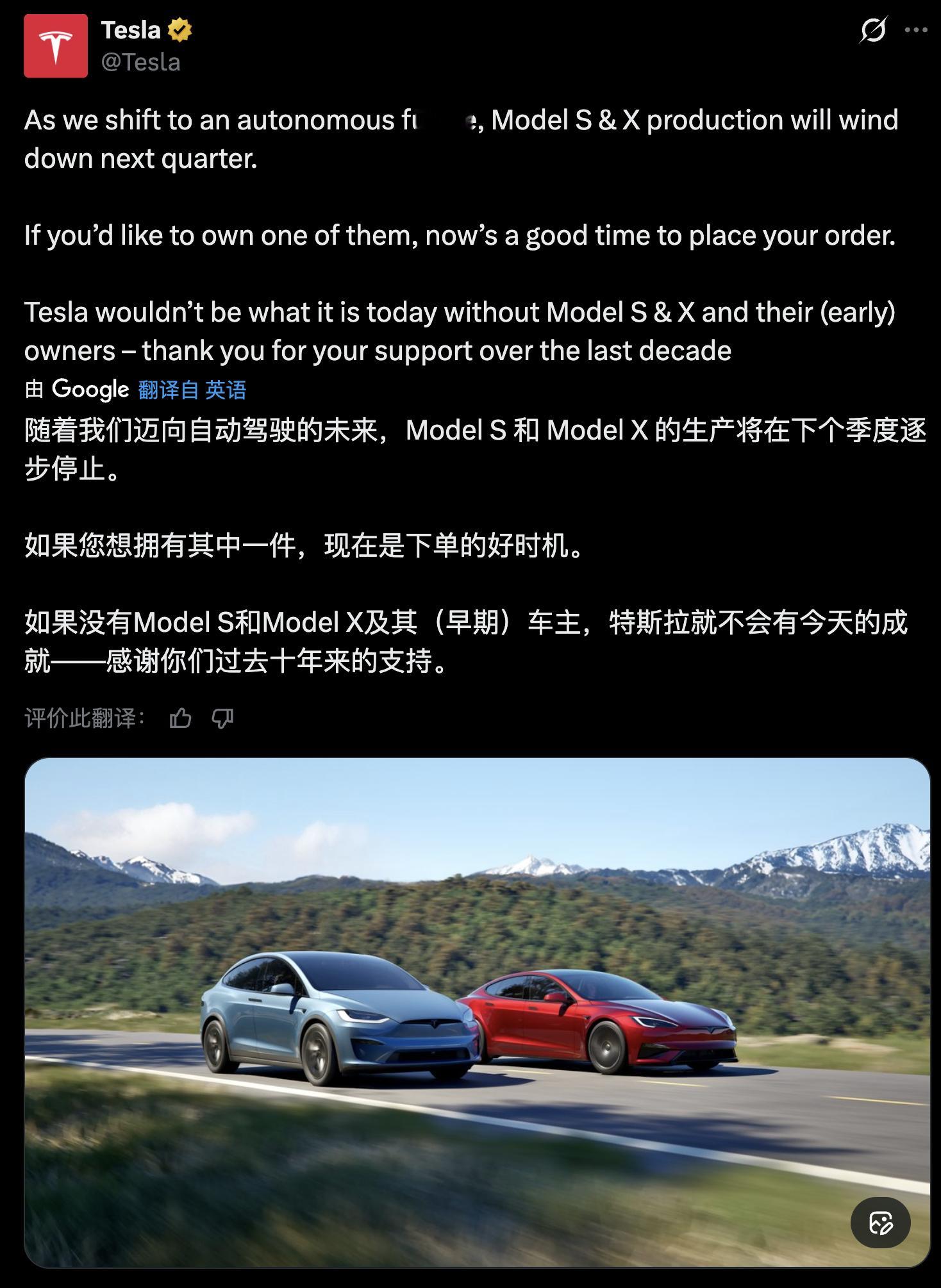特斯拉 突发!特斯拉Model S和Model X宣布停产!!后续工厂可能会用来生产擎天柱机器人.. 一个时代的落幕