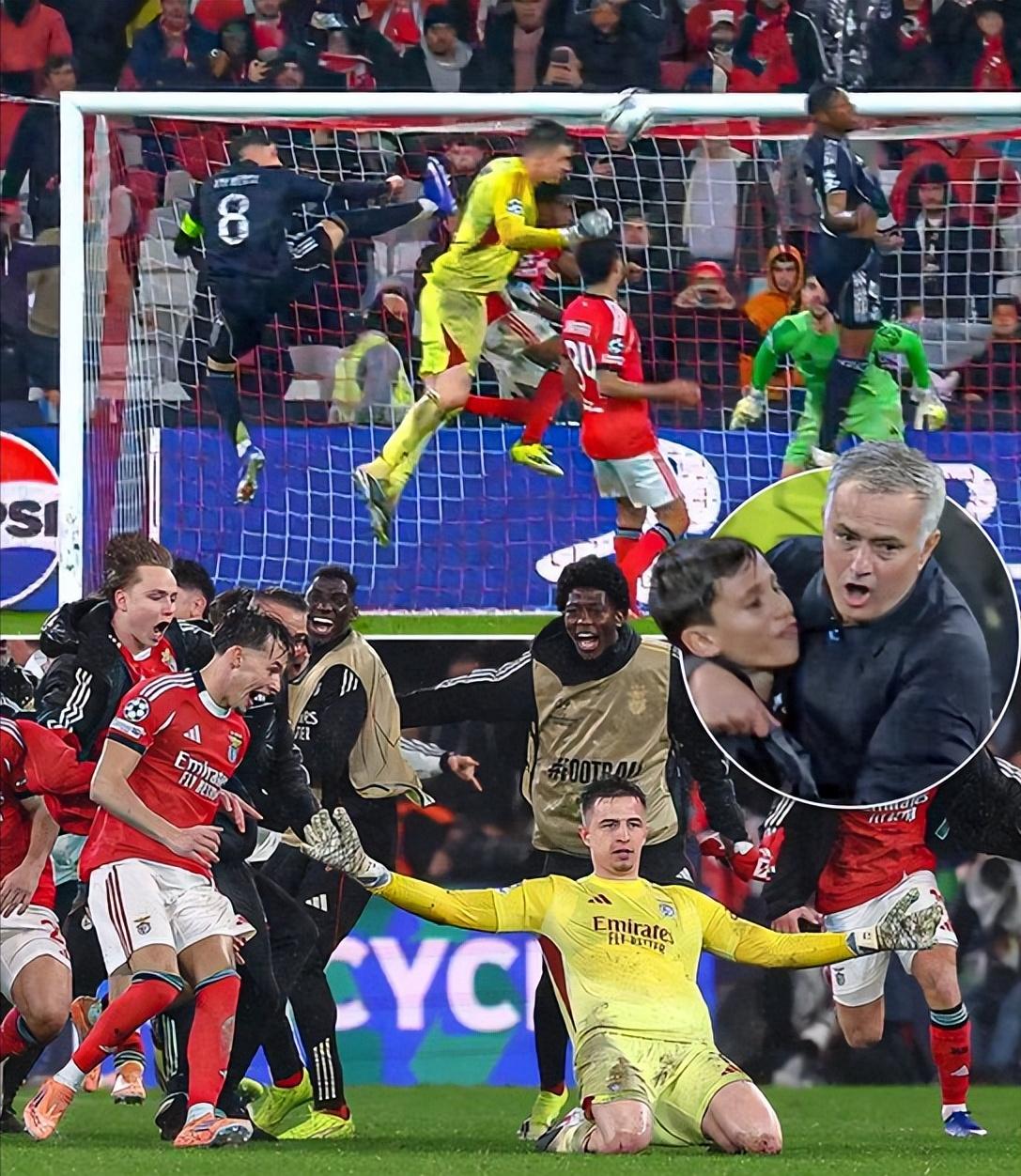 穆里尼奥太神奇了,比赛最后1分钟,他居然安排了10人进攻1人防守发策略,并又门将神奇进球,率队读秒晋级,这个临场指挥和应变能力太强了。 欧冠第8轮,此前本菲卡仅积6分并差4个净胜球才能晋级,对阵皇马的最后1分钟,穆里尼奥安排门将特鲁宾参与进攻,并在第98分钟头球破门,最终本菲卡完成史诗级的读秒晋级! 我们回顾下穆里尼奥在这几分钟时间里的经典布局:比赛第93分钟本菲卡3-2皇马,此时穆里尼奥换上伊万诺维奇和安东尼奥加强防守,因为大家都以为本菲卡晋级了,但实际上本菲卡还差1个净胜球。又过了1分钟,当穆里尼奥突然意识到净胜球不够时,球队已经没有换人名额了,穆里尼奥没有任何犹豫,安排奥塔门迪顶到前锋,最后1分钟获得任意球机会,穆里尼奥随后示意门将特鲁宾冲进禁区,安排10人参与进攻,而此时他也并没有完全孤注一掷,而是同时想好了防守对策,门将不在时,为了避免11人全部压上,塔特意安排了最矮的、速度最快的达尔留在中线附近,以防皇马打反击,这个全面的进攻和防守策略完全是在1分钟时间内部署完毕,并且最后门将特鲁滨神奇头球破门,造就了这场经典比赛。 我只能感叹穆里尼奥真的太神奇了,一般教练不可能这么短时间做出这么全面的部署安排。