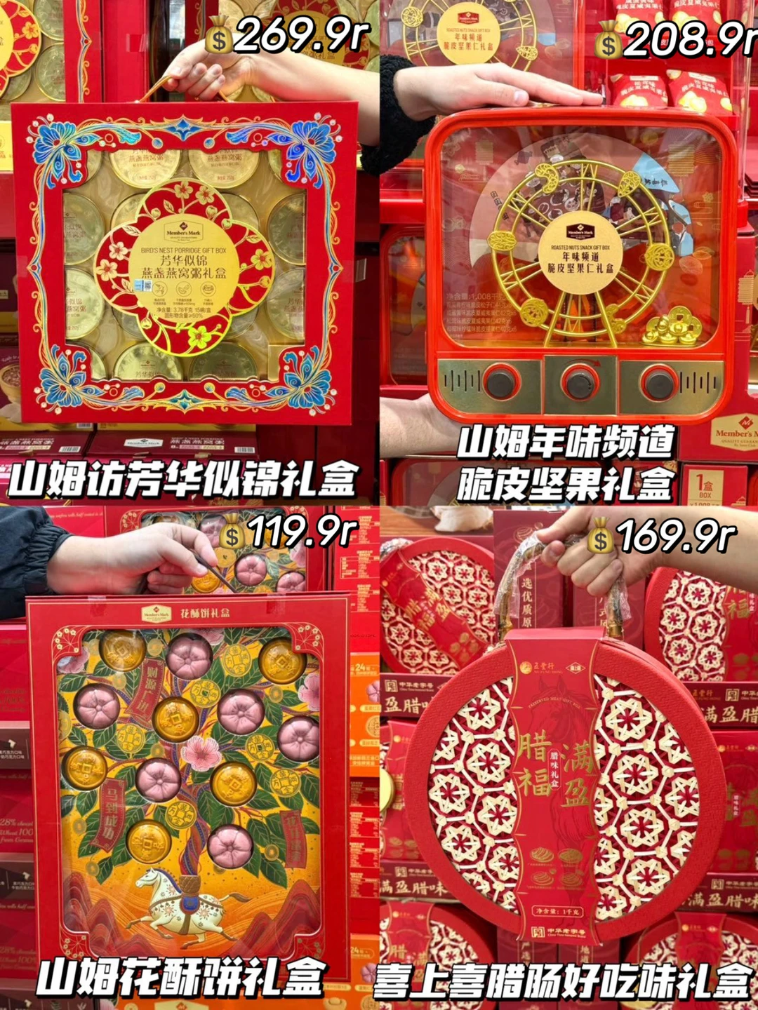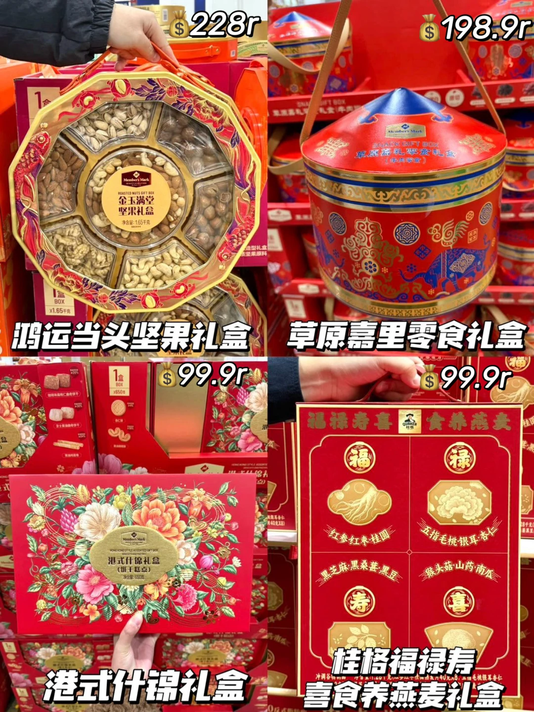 鸿运当头坚果礼盒、山姆年味频道皮坚果礼盒、草原嘉里零食礼盒