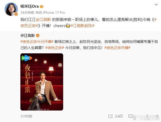 江疏影内娱人脉 江疏影内娱人脉真的绝了!新剧《夜色正浓》上线,圈内好友花式打call撑场,花少团桃花坞好友全员出动,好人缘藏不住👏