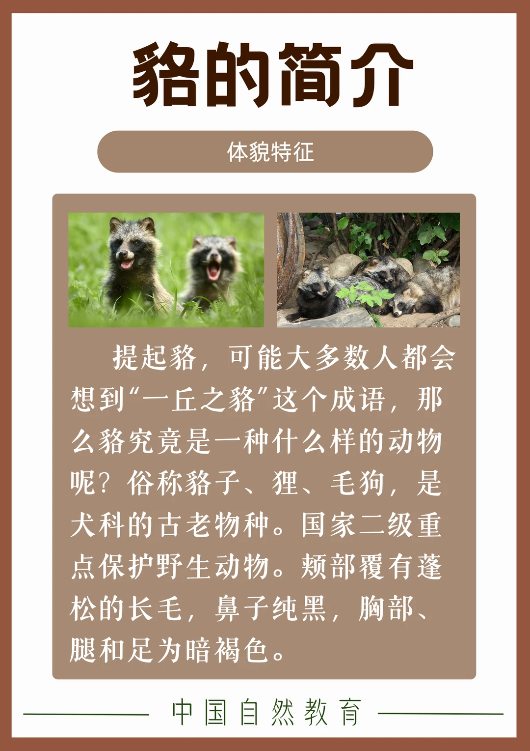 提起貉,可能大多数人都会想到"一丘之貉"这个成语,那么貉究竟是一种什么样的动物呢?俗称貉子,狸,毛狗,是犬科的古老物种。国家二级重点保护野生动物。颊部覆有蓬松的长毛,鼻子纯黑,胸部,腿和足为暗褐色。