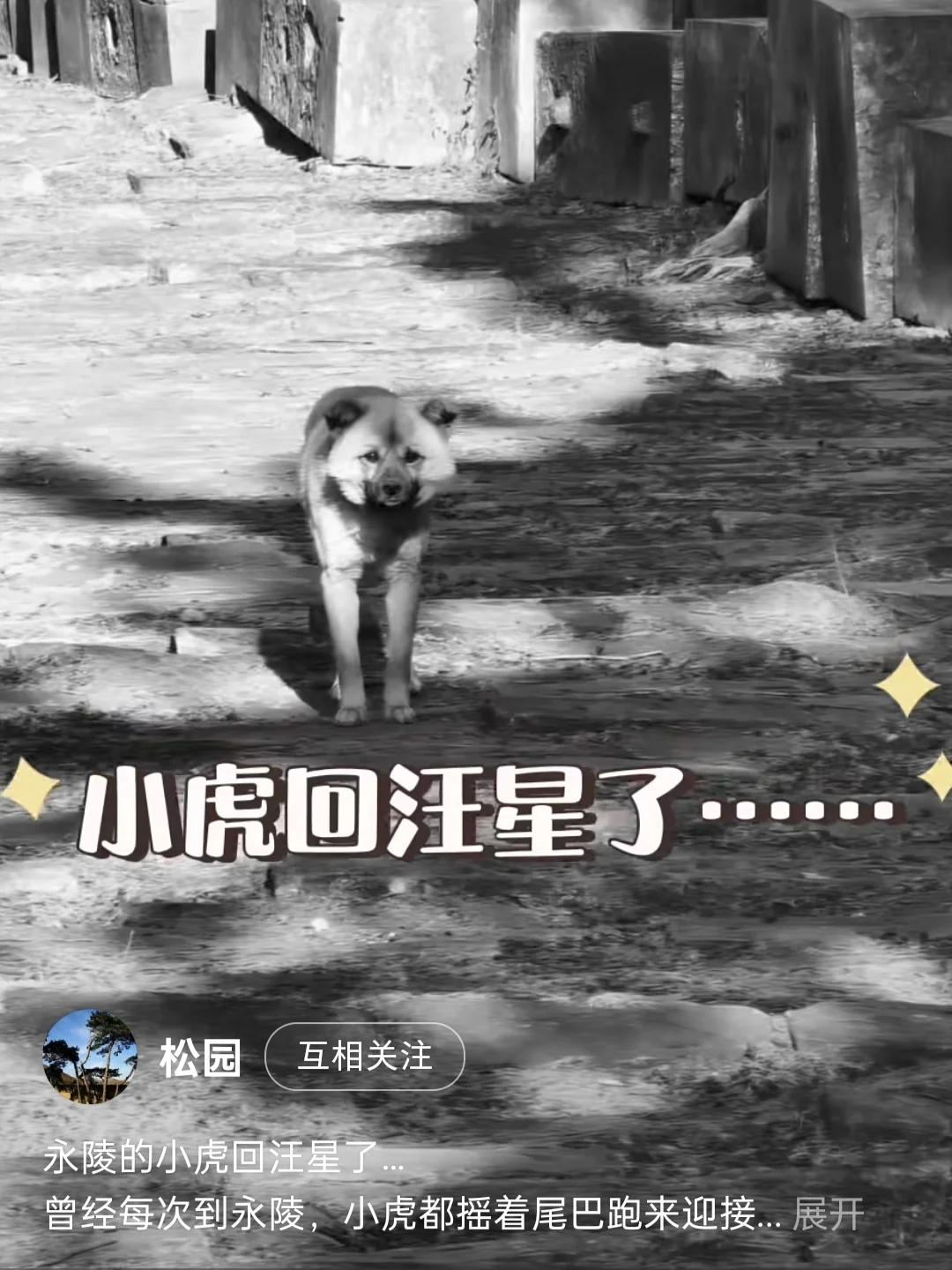 几天前看到消息,永陵小虎生病了,没想到今天上午就收到松园老师的消息——小虎回汪星了。。。2025年10月19日,由于准备一天游览十三陵,所以在永陵门口只是匆匆见了你一面,也没有带吃的给你。谁能想到,见你的第一面,也是最后一面。 再见了,小虎。