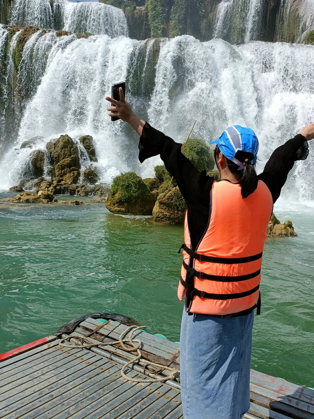 2、德天瀑布竹筏:靠近瀑布的那一刻娃惊声尖叫,实在太震撼了!