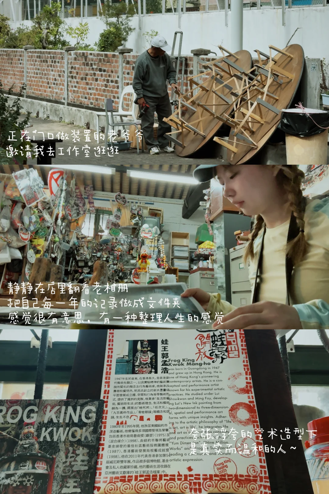 路过小店门口,被店员老爷爷邀请,带领着我逛了“蛙王”的工作室,介绍着他的作品。分享蛙王每天都会给他的韩国妻子,拍一张带有日期的照片。他就让我坐在店里,随意翻看过往记录的册子。
