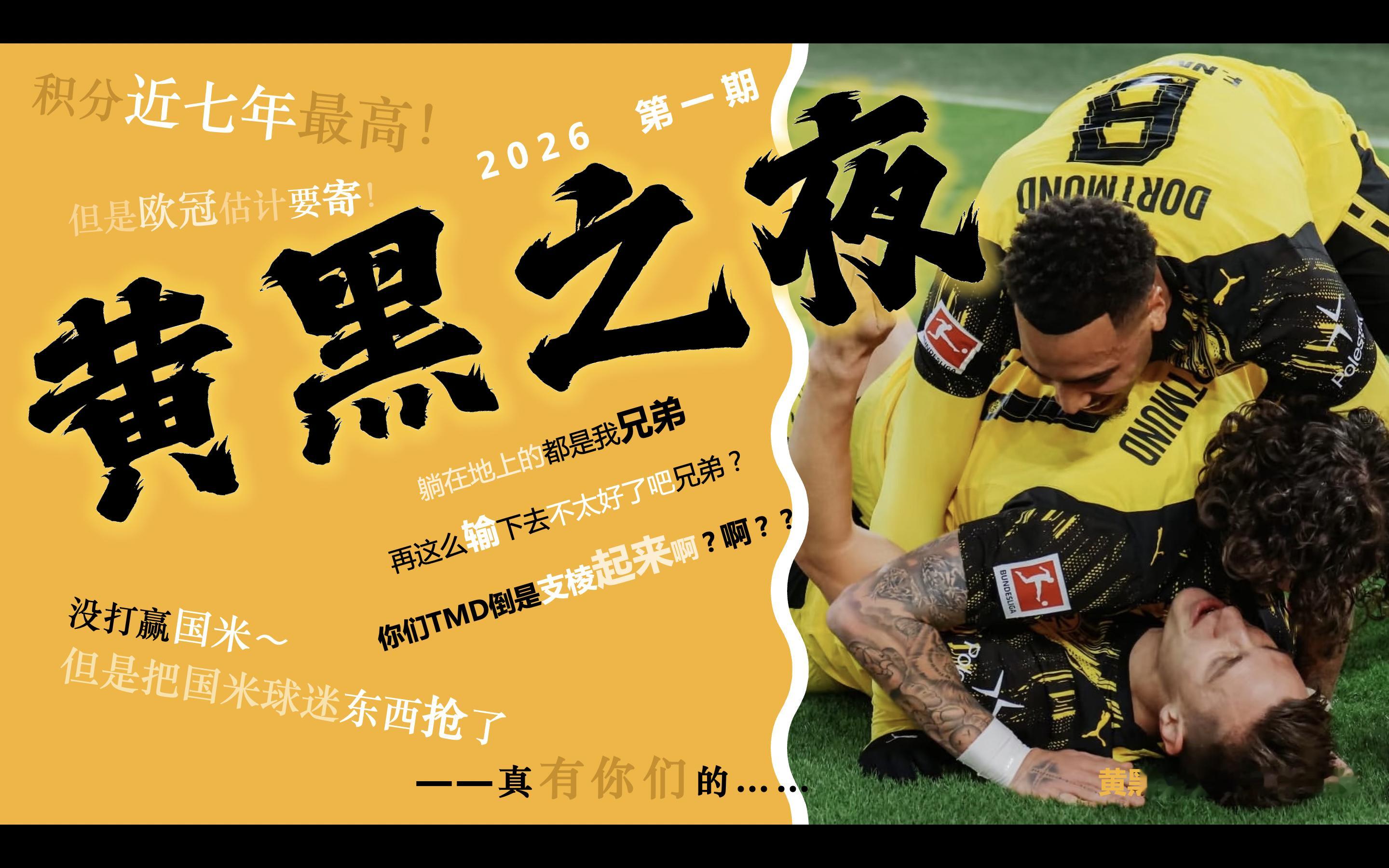 多特蒙德黄黑普鲁士1.31(本周六20:00 黄黑之夜26年第一期!年终批判大会