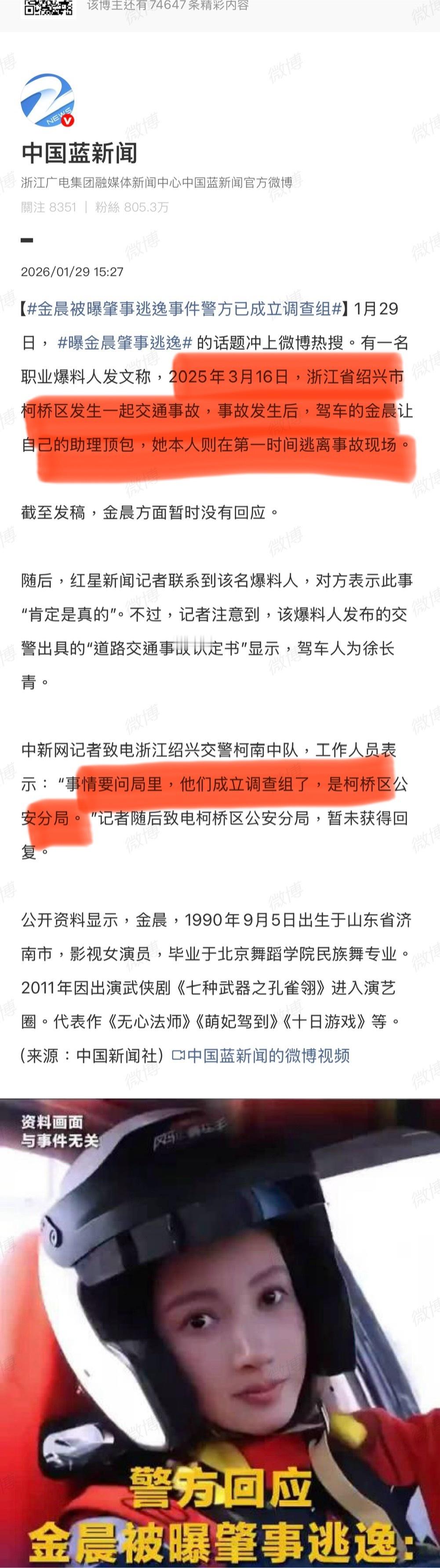 曝金晨肇事逃逸…要是真的…啥脑子啊,还去报保险,人家保险都得调监控的,现在监控
