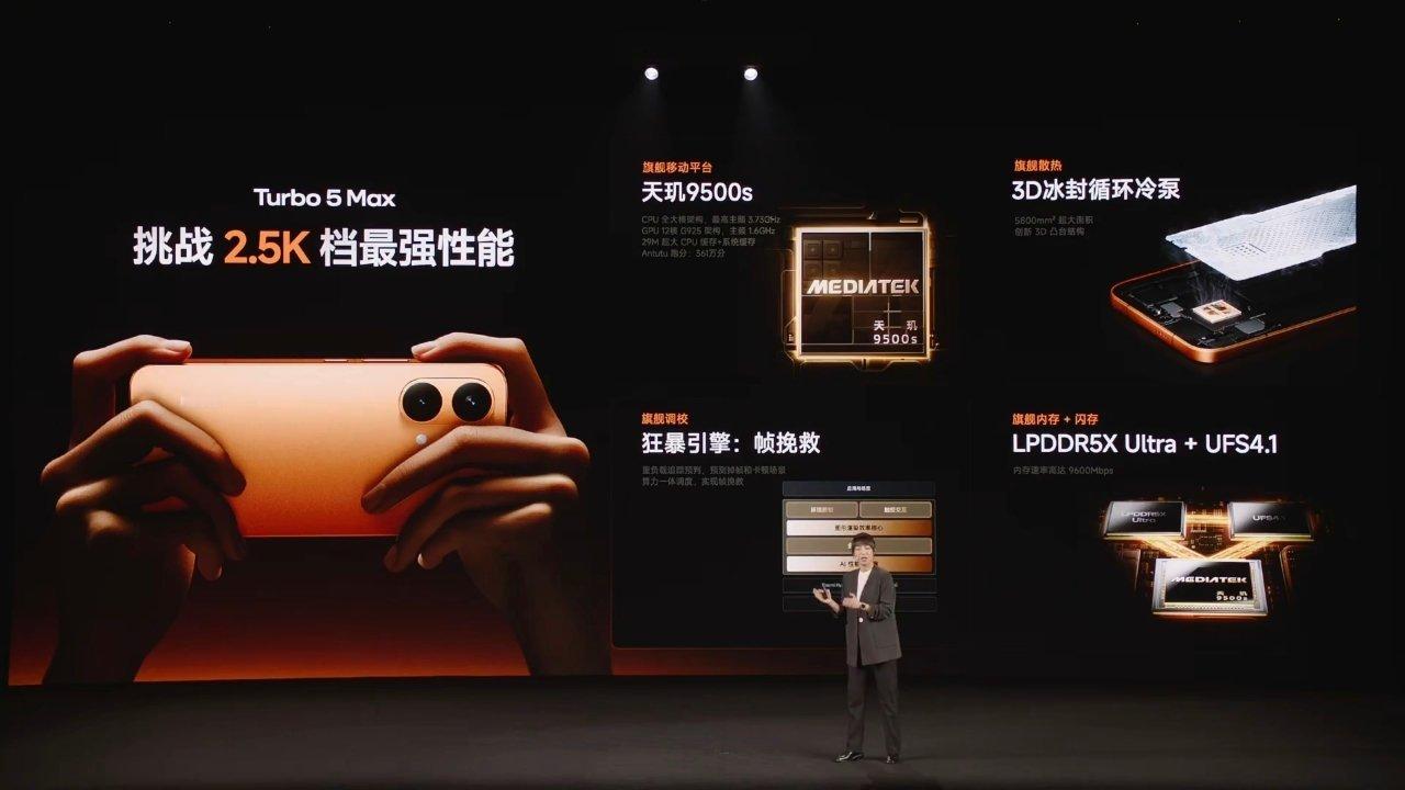 红米Turbo5发布会 开始了,Turbo5 Max搭载天玑9500s处理器,在3D冰封循环冷泵,狂暴引擎的加持下性能可以很好释放,内置9000mAh 金沙江电池,支持 100W 快充、27W 反向有线充电,也支持100W PPS充电协议,这个配置夯不夯?