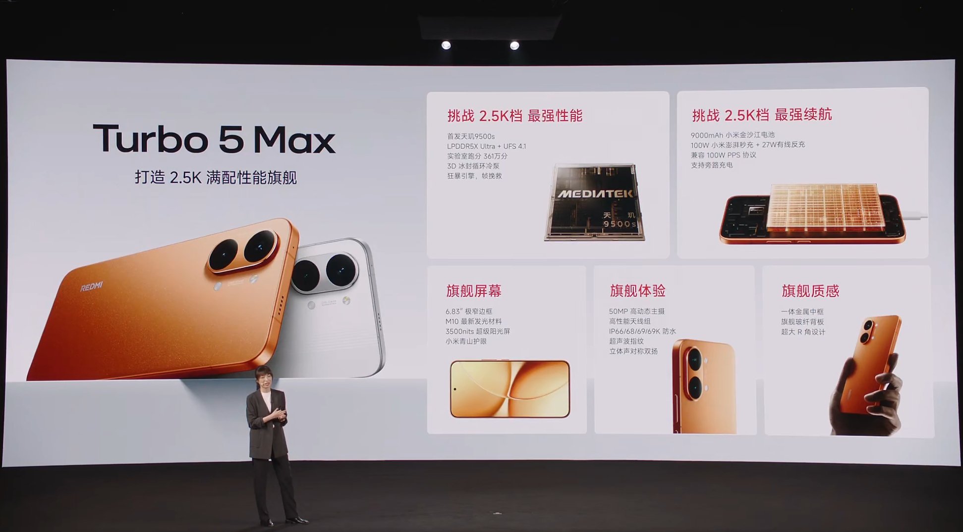 Turbo5Max价格真香 REDMI Turbo 5 Max 价格出来了,2499元起,首销只要2199元,还能叠加国补,下来只要1800出头,这个价格是真的香。要知道这机器配置可并不低,天玑9500s+LPDDR5X Ultra+UFS4.1性能铁三角,9000mAh小米金沙江电池+100W有线秒充续航组合,也支持100W PPS充电协议,屏幕是旗舰同款M10发光材料,还有金属中框、超声波指纹解锁、T1S信号增强芯片、IP66/IP68/IP69/IP69K防水大满贯等等,闭眼冲都不亏!
